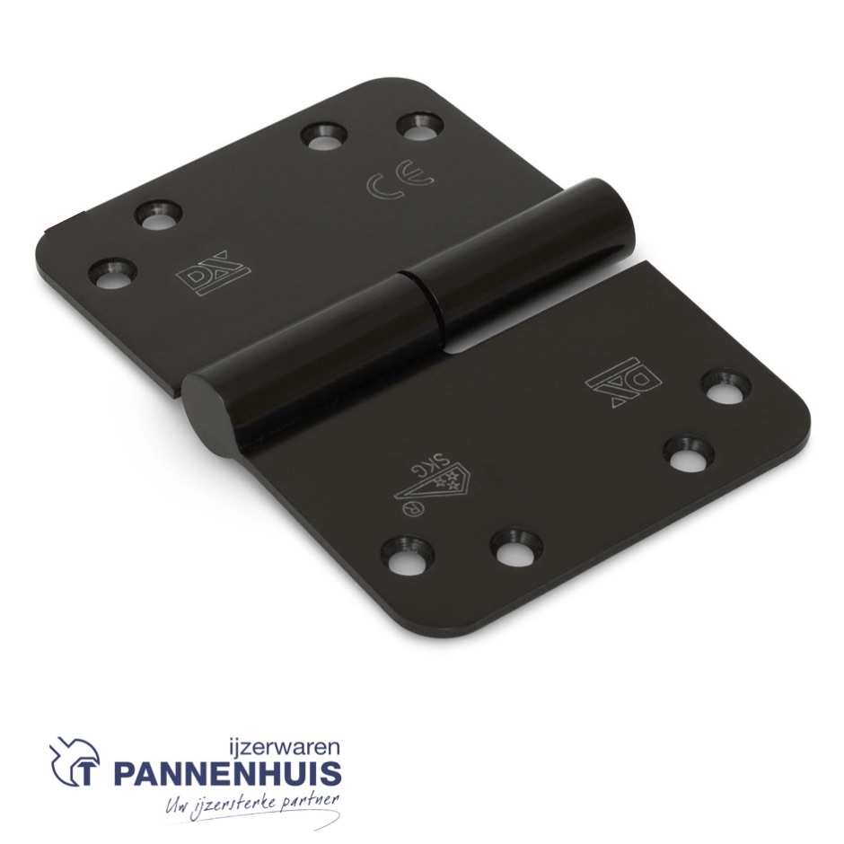 Kogelstiftpaumelle ronde hoeken 125×89 mm rechts (belgisch links) RVS geborsteld zwart SKG ***