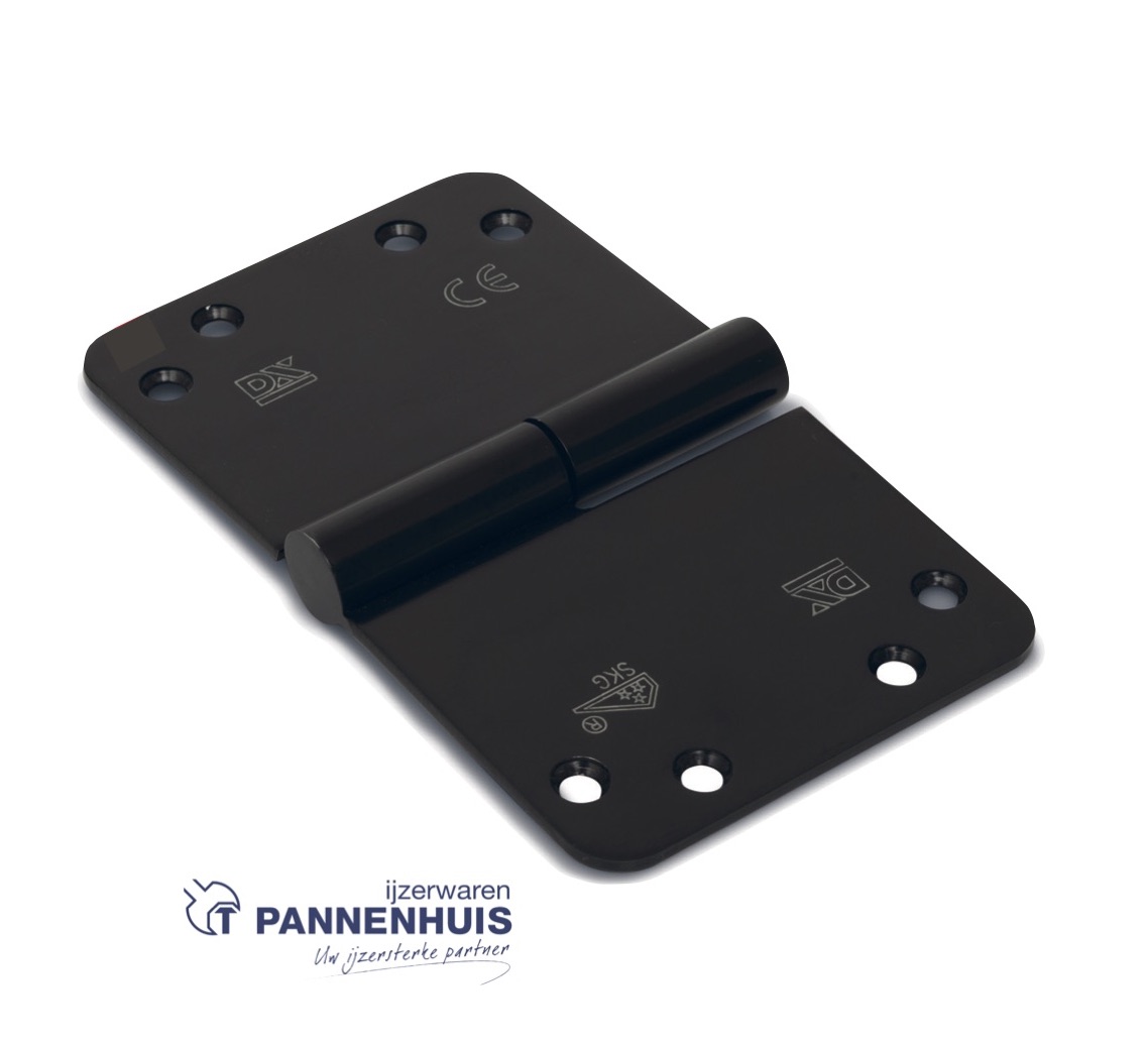 Kogelstiftpaumelle ronde hoeken 150×89 mm links (belgisch rechts) RVS geborsteld zwart SKG ***