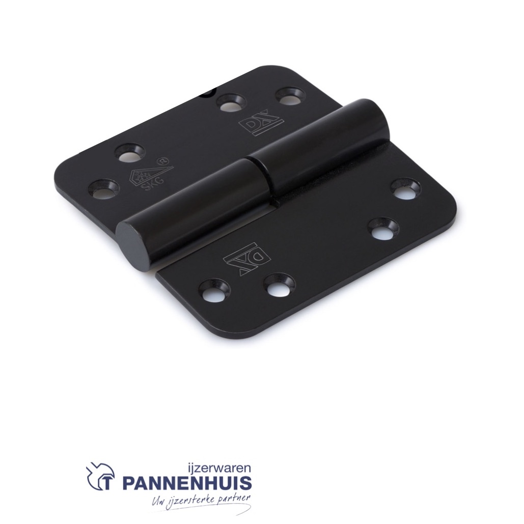 Kogelstiftpaumelle ronde hoeken 89×89 mm Links (belgisch rechts) RVS geborsteld zwart SKG ***