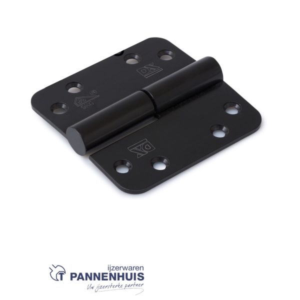 Kogelstiftpaumelle ronde hoeken 89×89 mm rechts (belgisch links) RVS geborsteld zwart SKG ***