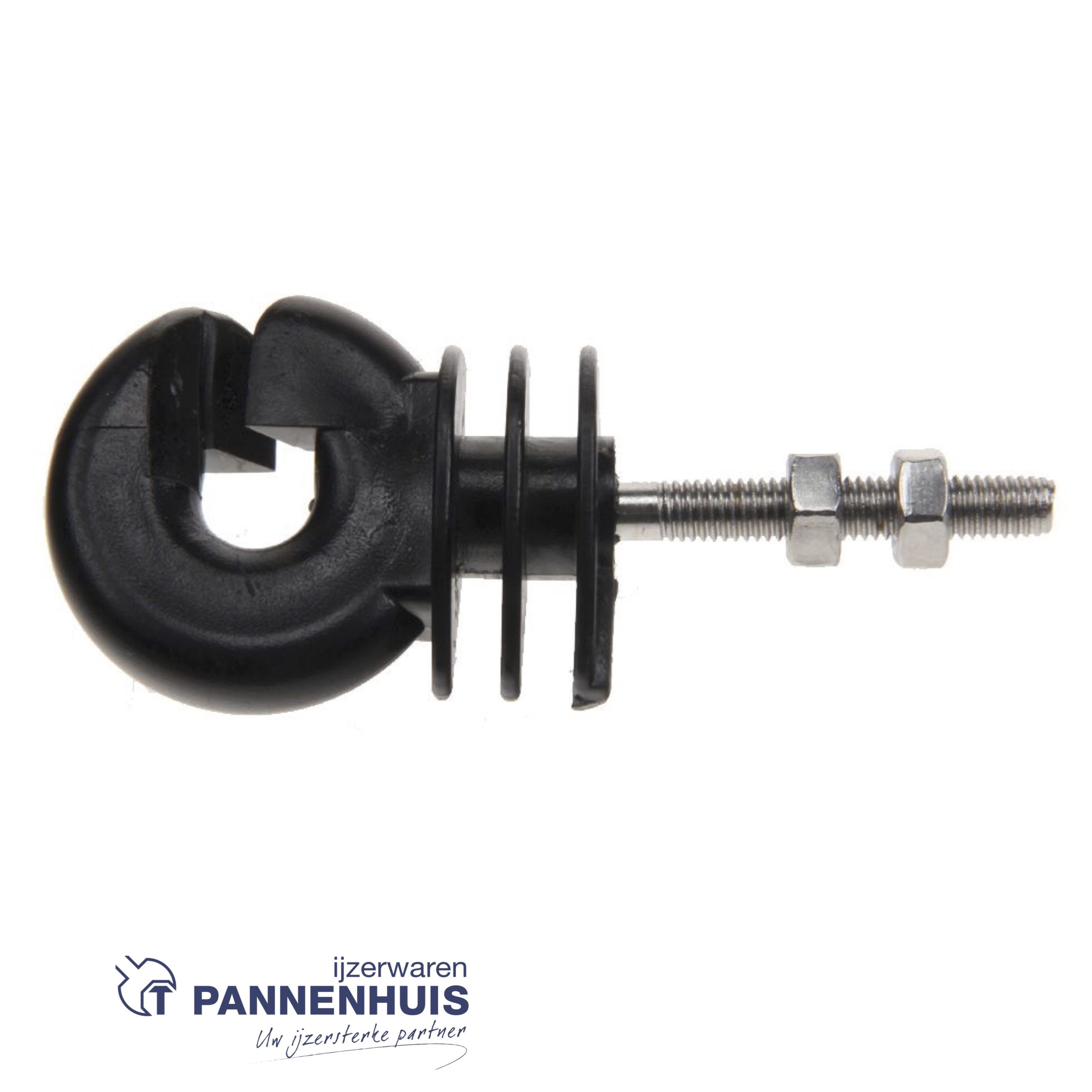 KOLTEC ringisolatoren met RVS/INOX stift voorzien van 40mm M6 draad, incl. RVS/INOX moeren, geschikt voor metalen palen.