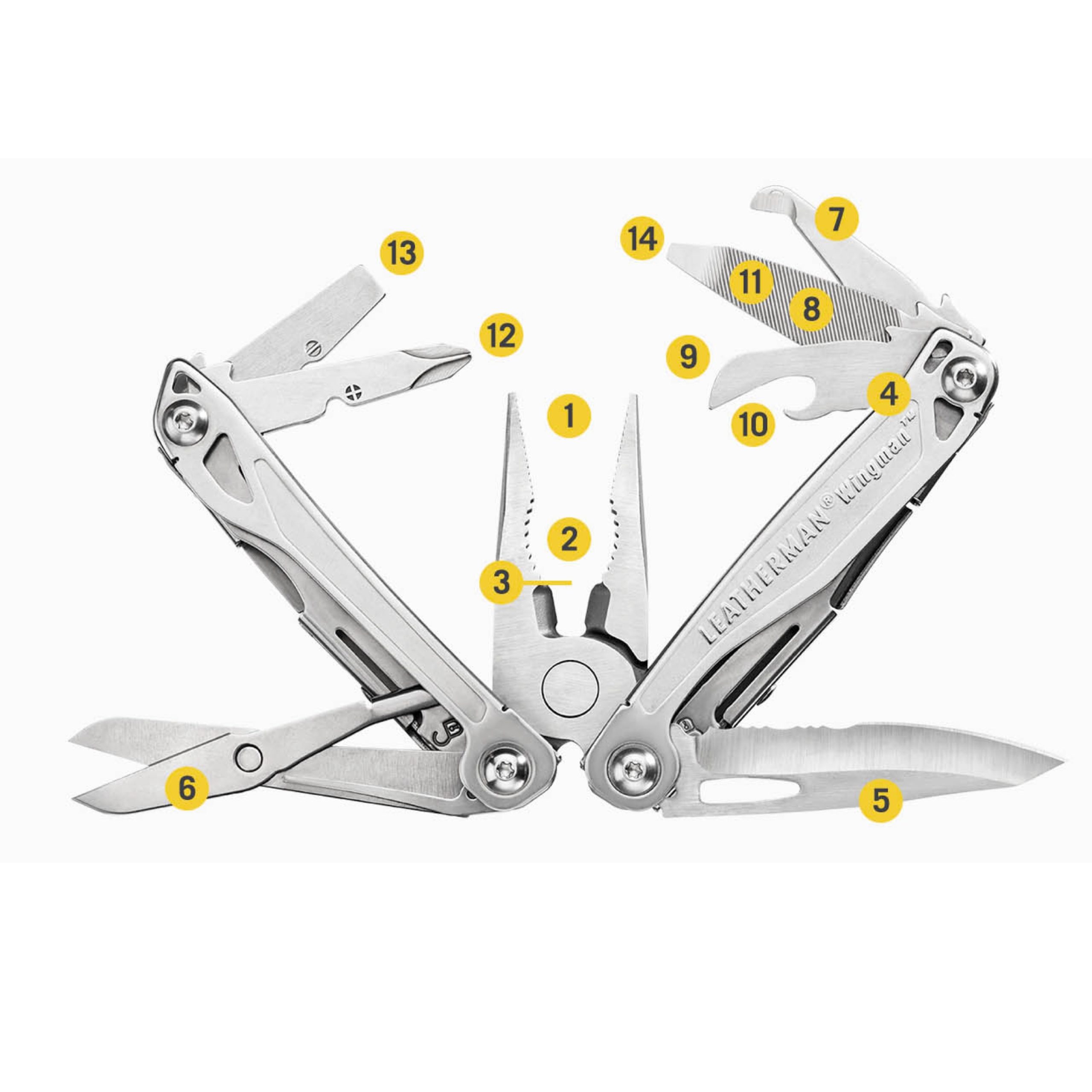 Een van onze best beoordeelde multitools. Hij bestaat uit een veertang, een schaar en 12 andere onmisbare gereedschappen.