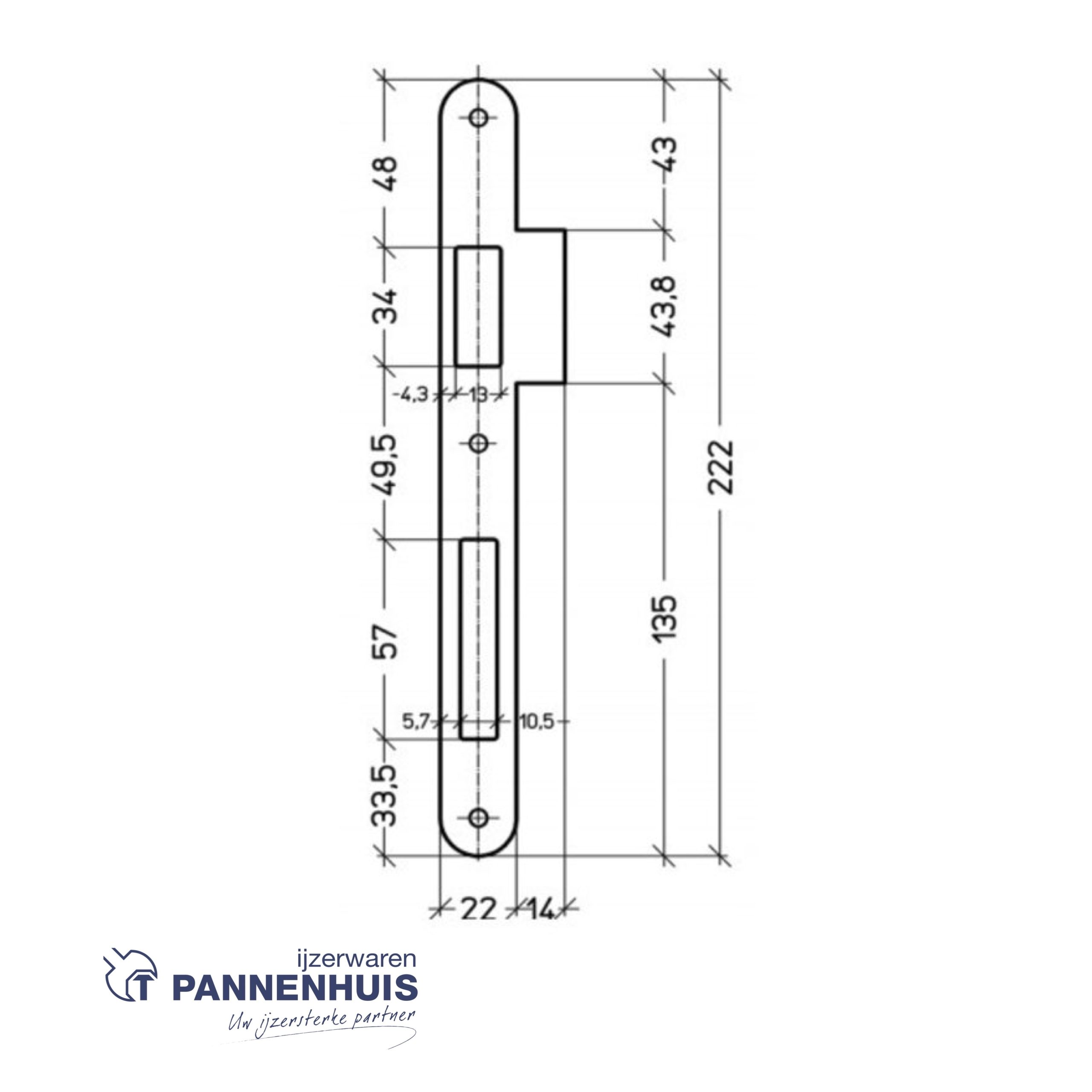 Afmetingen sluitplaat (LxBxH/B+Lip) (mm) 222 x 22 / 36