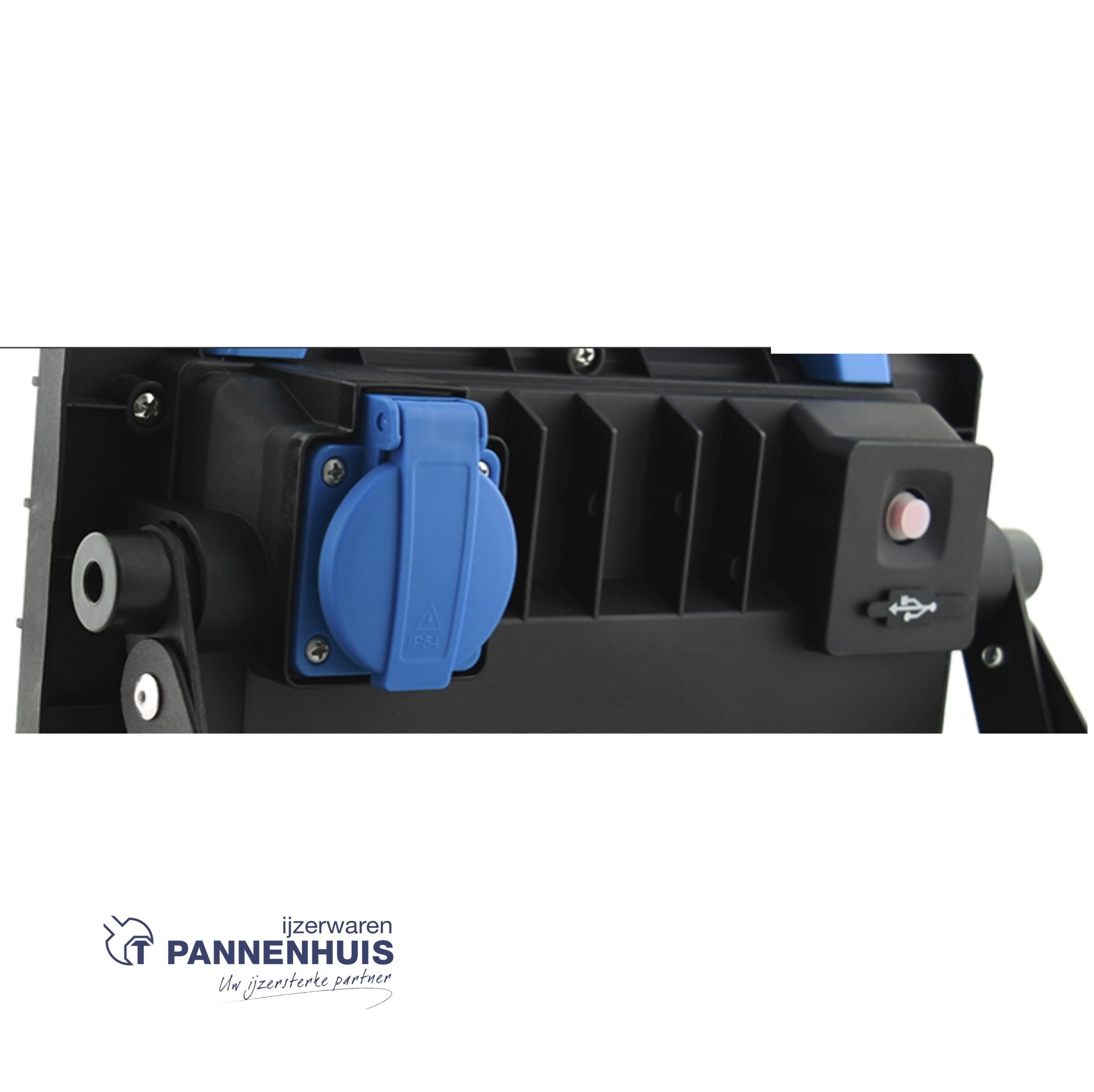 Er is één stopcontact, zo kunnen extra lampen of andere machines worden aangesloten tot maximum 3600 Watt.