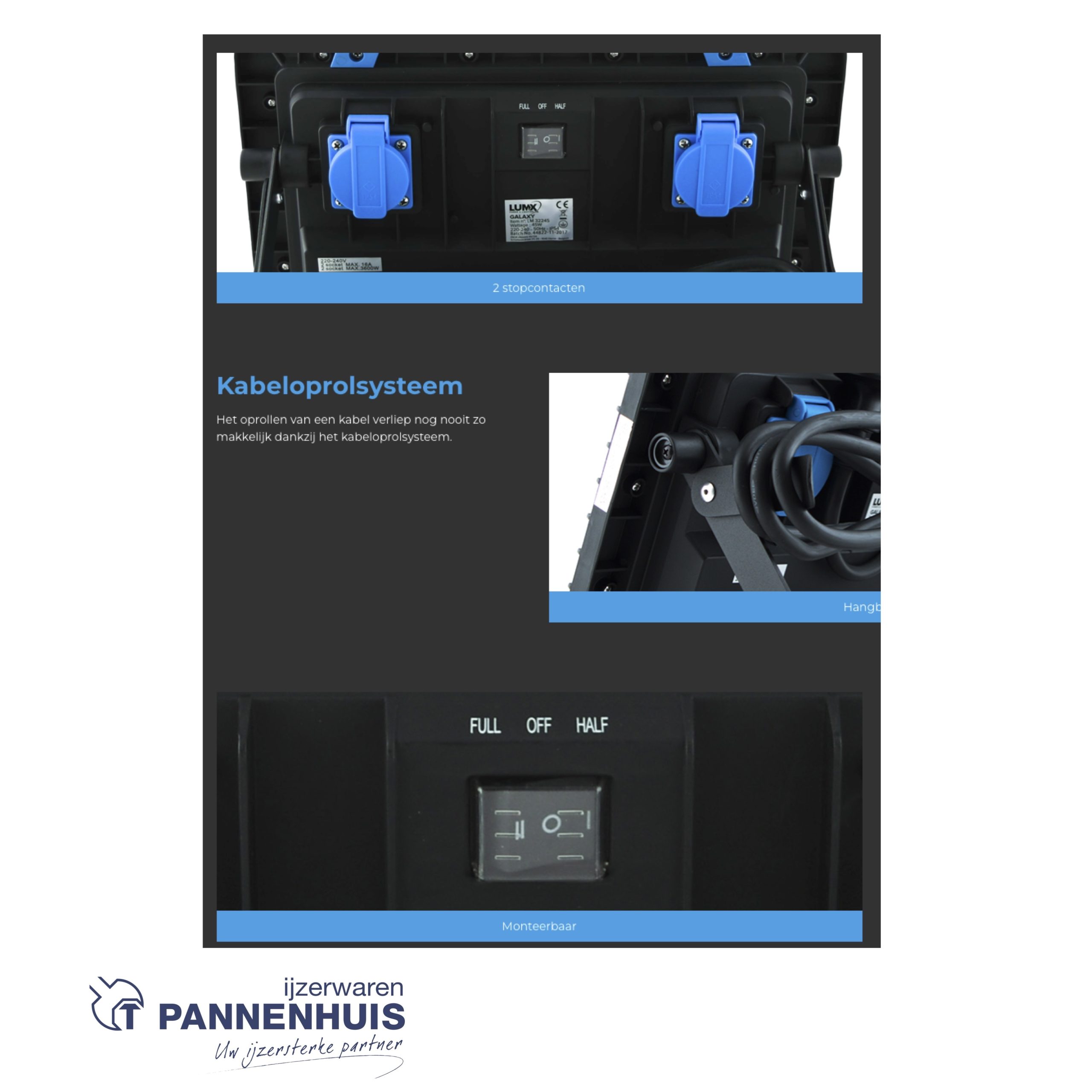 Deze lamp biedt enorm veel licht en kan ook op een statief gebruikt worden, daarom is de Galaxy de beste keuze voor elke werf!