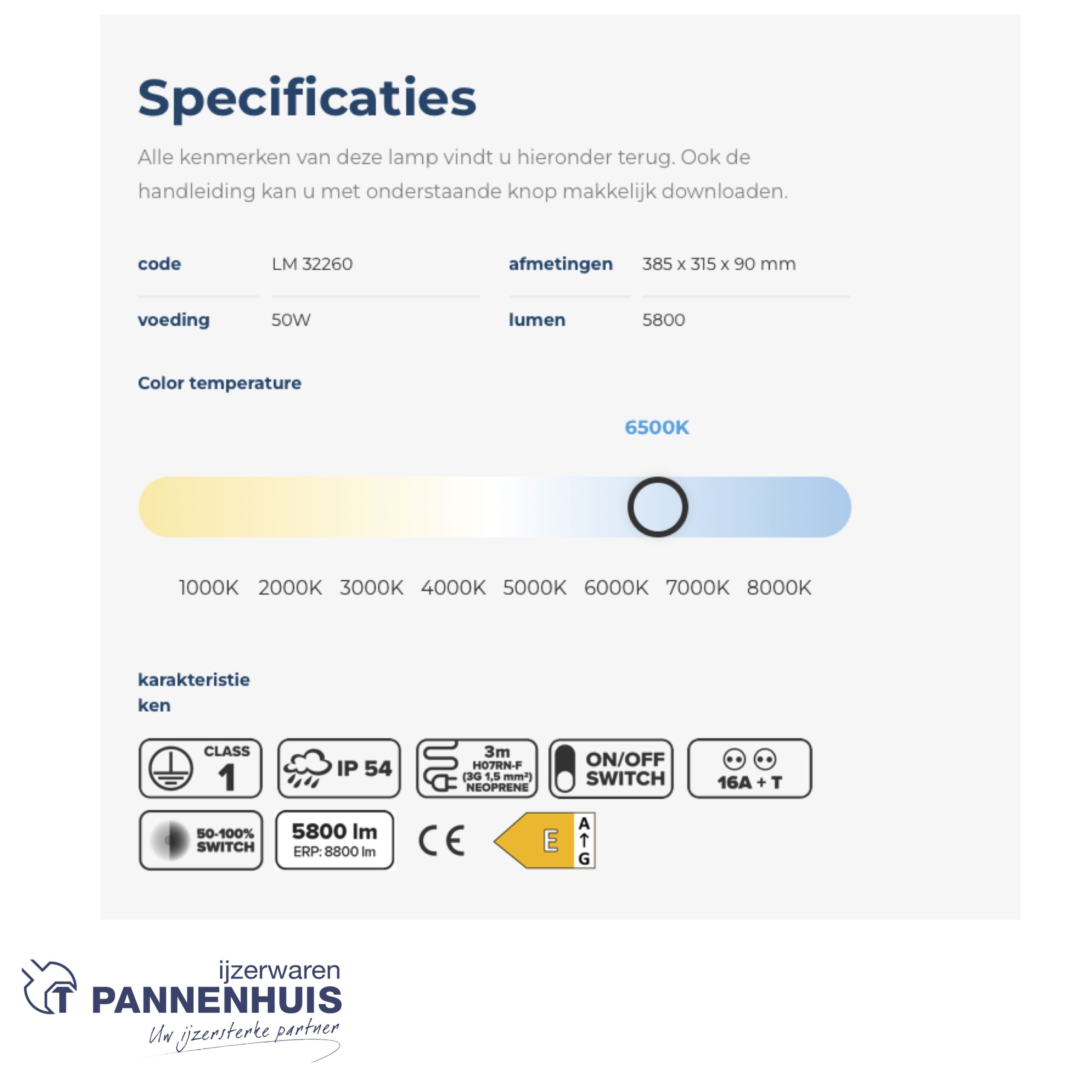 Alle kenmerken van deze lamp vindt u hieronder terug. Ook de handleiding kan u met onderstaande knop makkelijk downloaden.