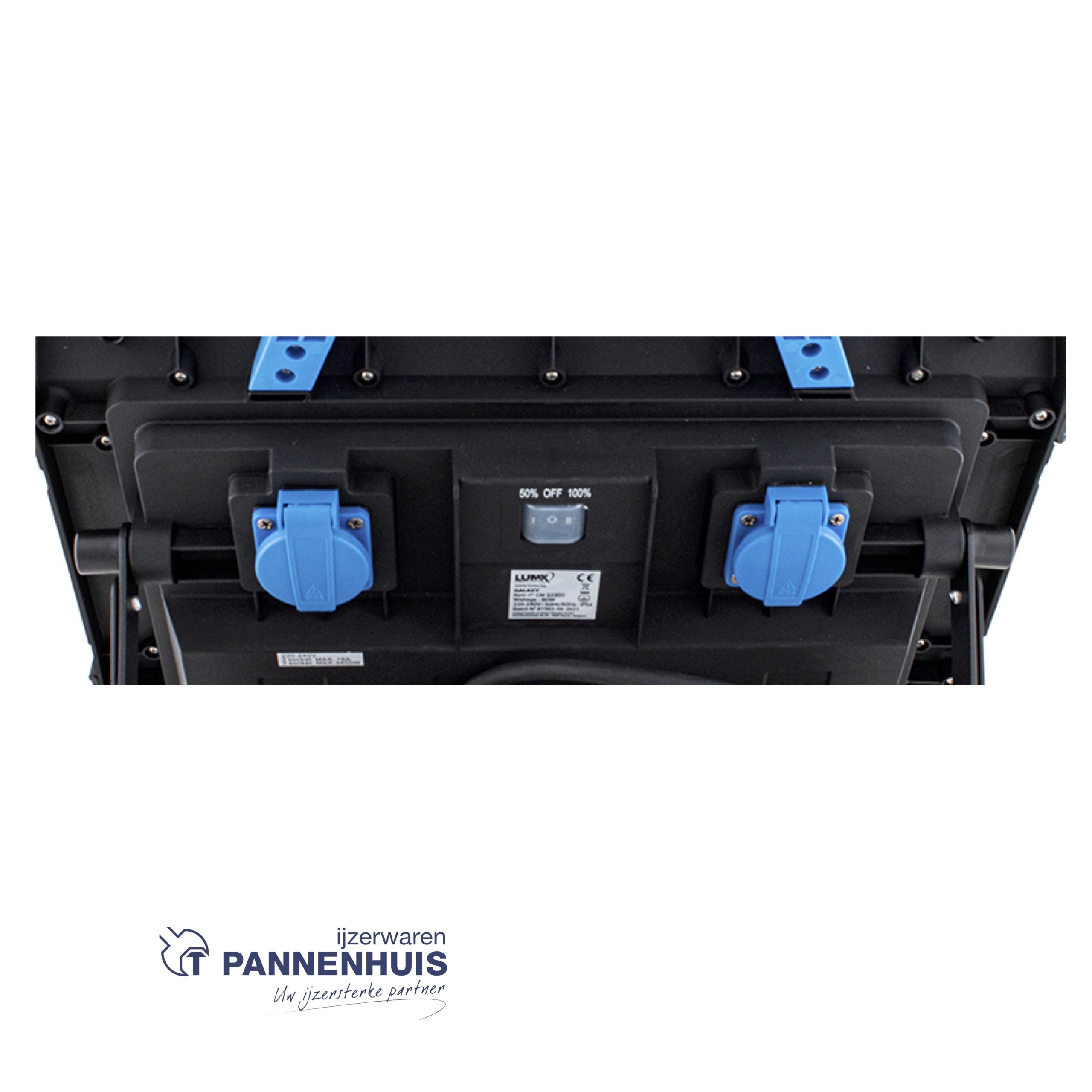 Er zijn twee stopcontacten, zo kunnen extra lampen of andere machines worden aangesloten tot maximum 3600 Watt.