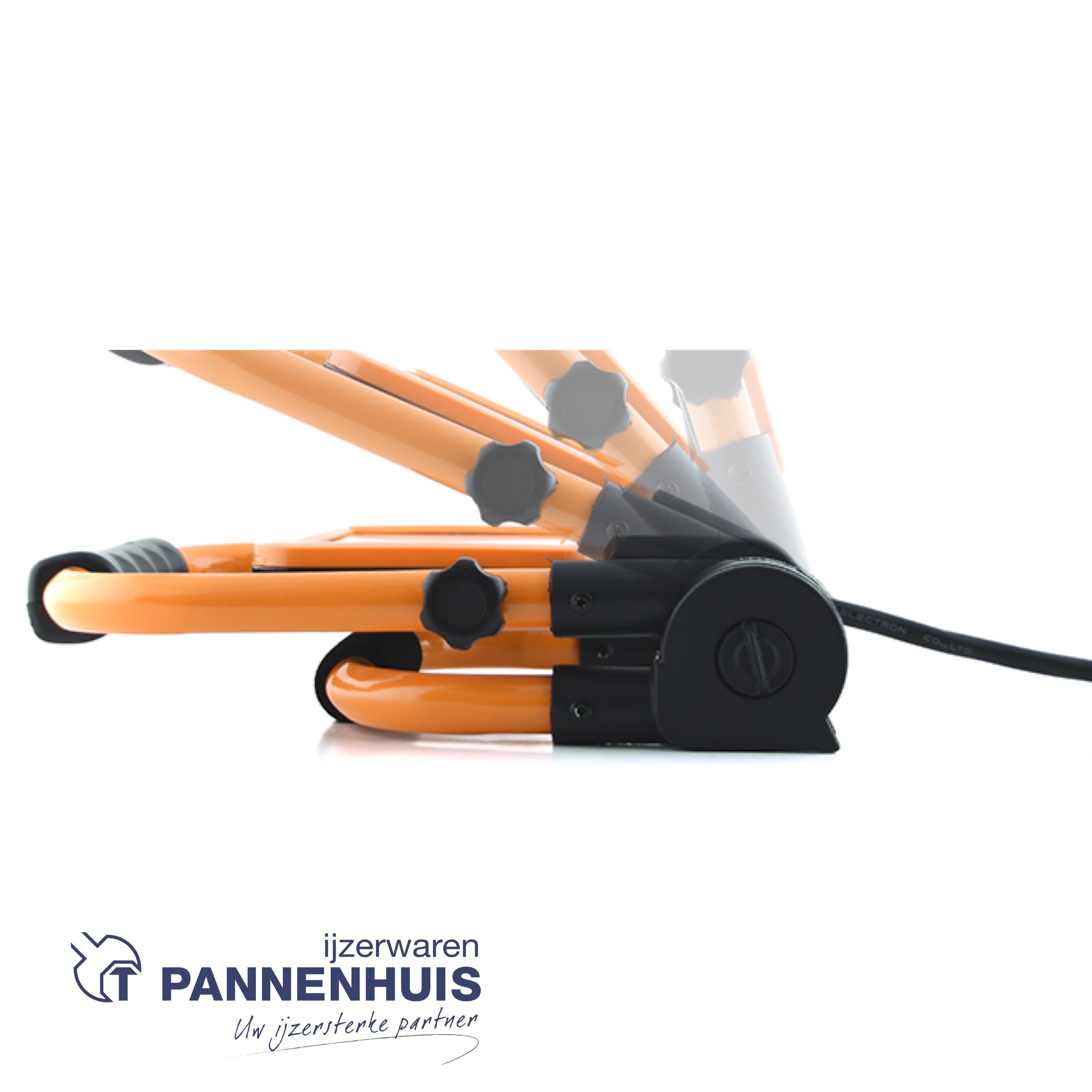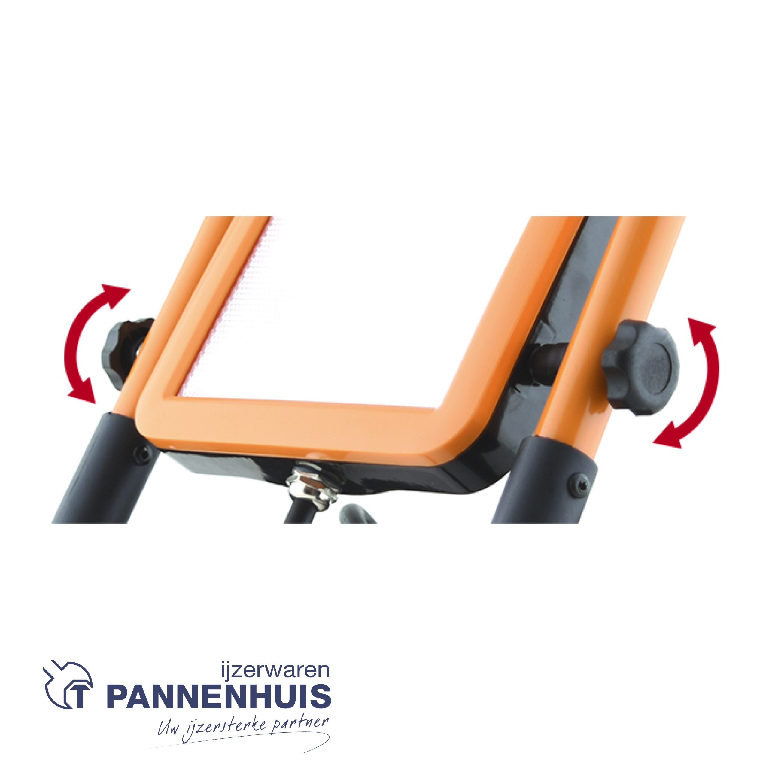 De werflamp kan door één druk op de knop worden opgeplooid, hierdoor is het makkelijk te transporteren.