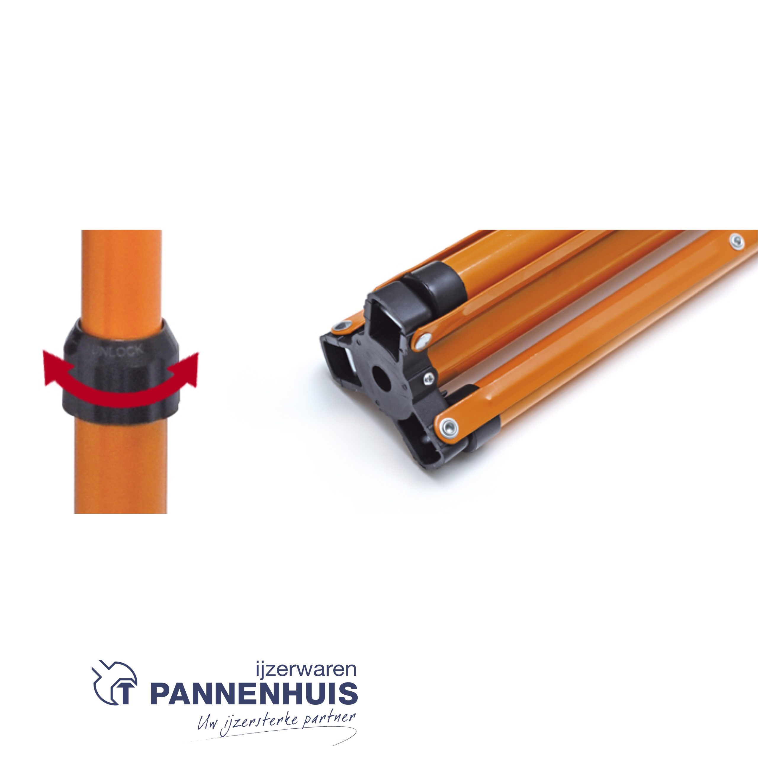 Het statief kan van hoogte worden veranderd, van 0,80 m tot 1,75 m.