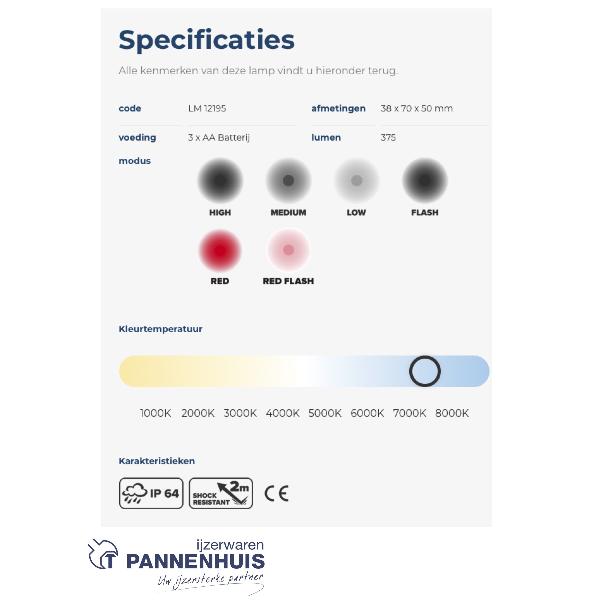 Deze hoofdlamp is 45° kantelbaar, compact en gemakkelijk te gebruiken. Ze heeft 6 gebruiksstanden. De verschuifbare diffuser biedt u de mogelijkheid om gerichter te verlichten of om een bredere lichtstraal te gebruiken.