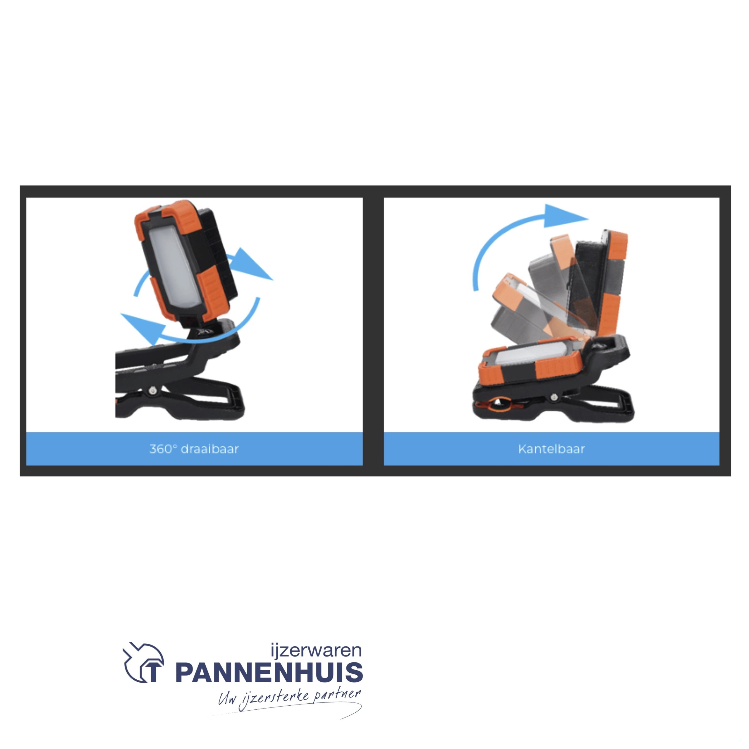 Lumx LED klemlamp 360° CL-20 – 20W – 1800 lumen – IP65, herlaadbaar