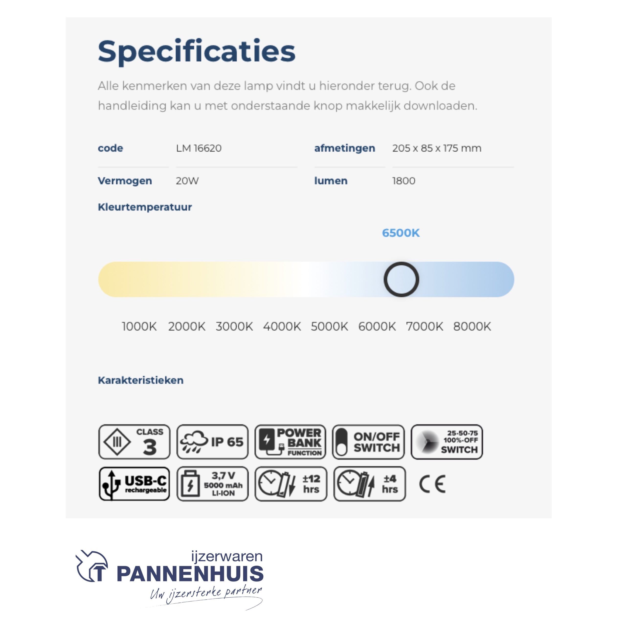 Alle kenmerken van deze lamp vindt u hieronder terug. Ook de handleiding kan u met onderstaande knop makkelijk downloaden.