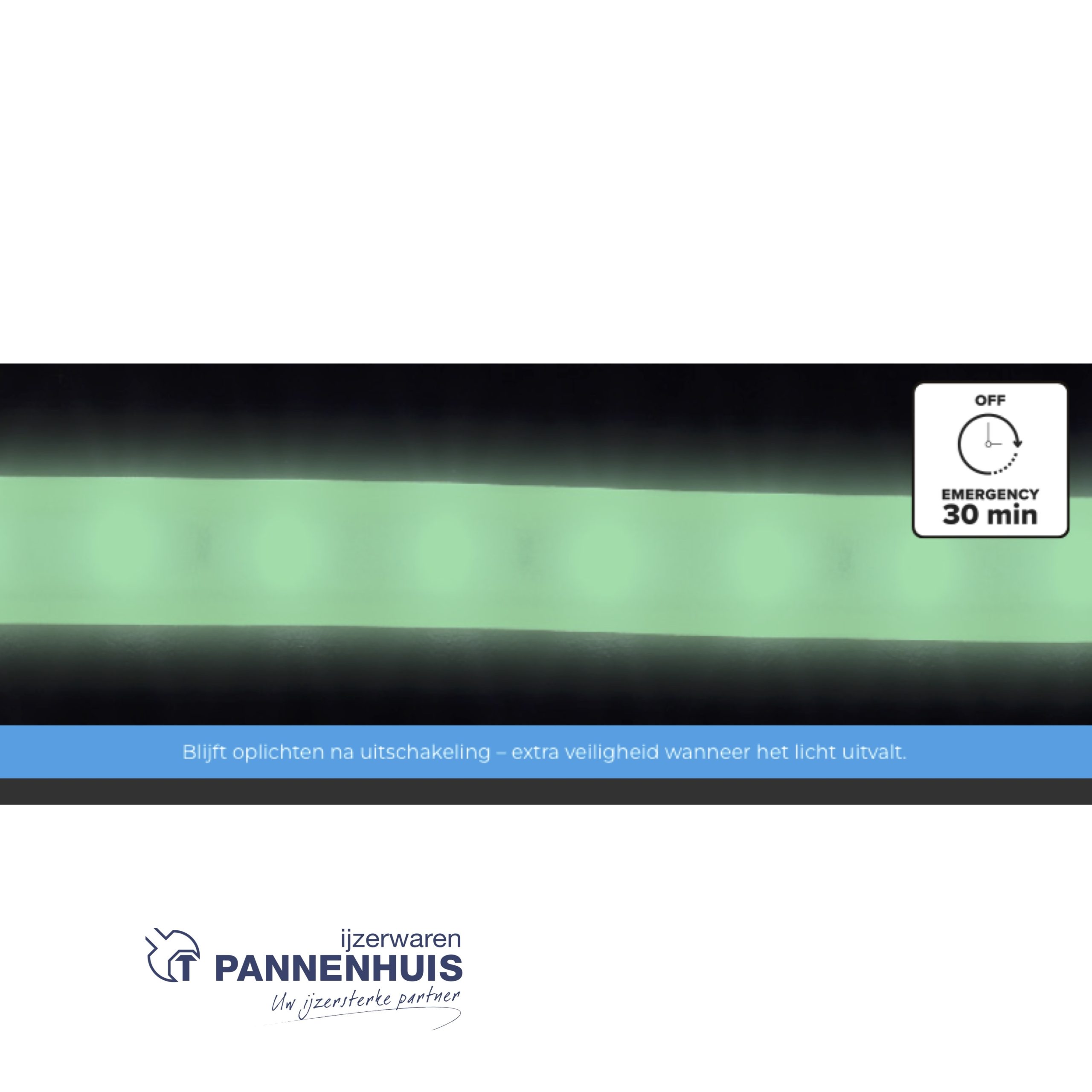 De ‘DUO LED’-technologie met LED’s aan beide zijden biedt maximale lichtopbrengst. Dankzij de snelle installatie bespaar je tijd en geld. De strip wordt geleverd op een praktische haspel met blokkeersysteem voor extra gebruiksgemak. Het fluorescerende materiaal helpt bij het creëren van richtlijnen de dichtstbijzijnde uitgang aan te geven in geval van een stroomstoring, en dat gedurende 30 minuten.