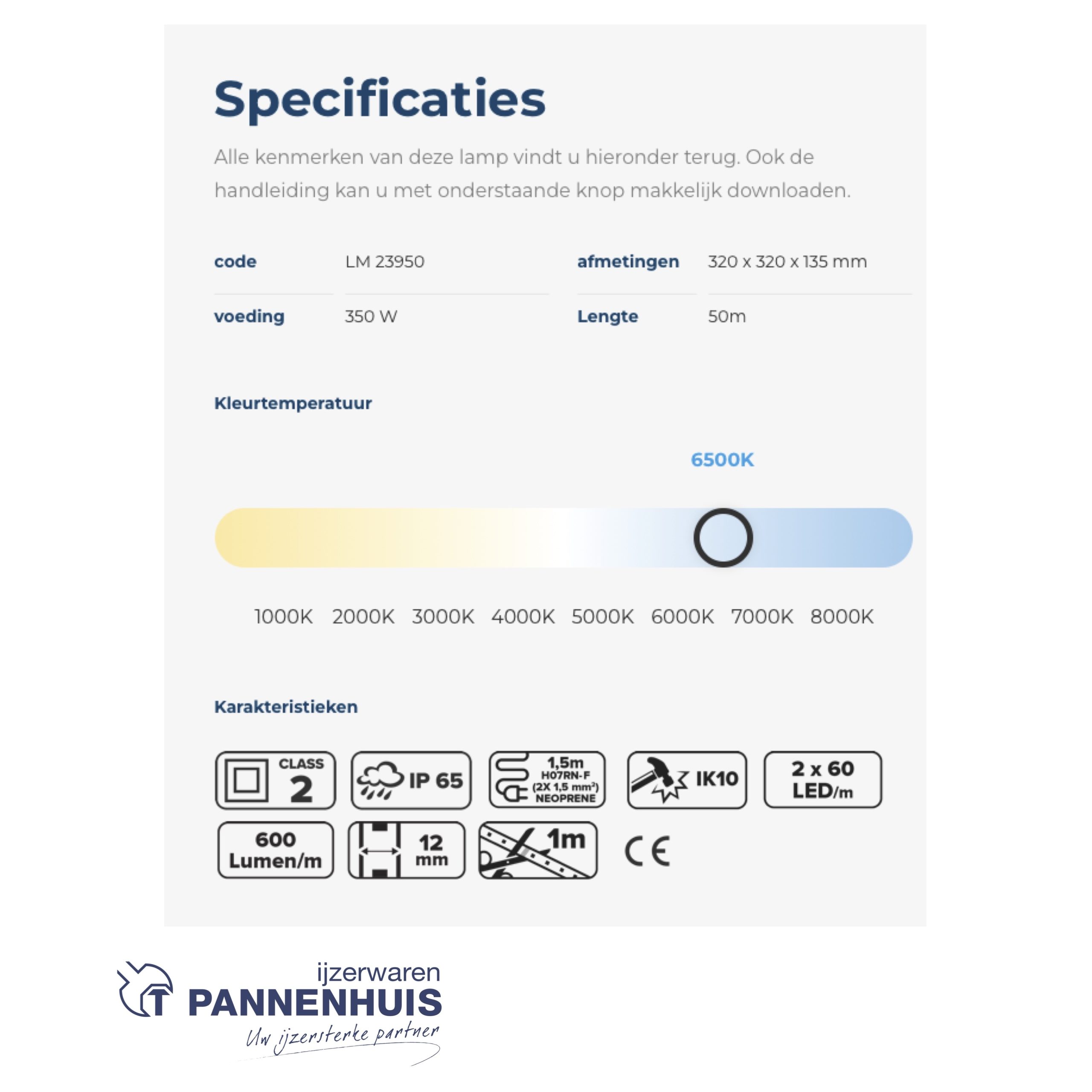 Alle kenmerken van deze lamp vindt u hieronder terug. Ook de handleiding kan u met onderstaande knop makkelijk downloaden.