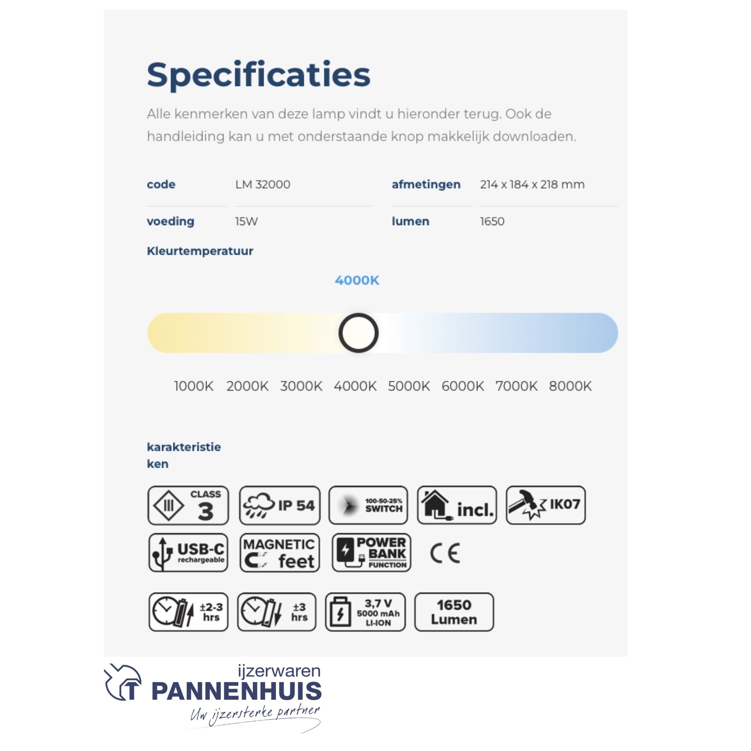 Alle kenmerken van deze lamp vindt u hieronder terug. Ook de handleiding kan u met onderstaande knop makkelijk downloaden.