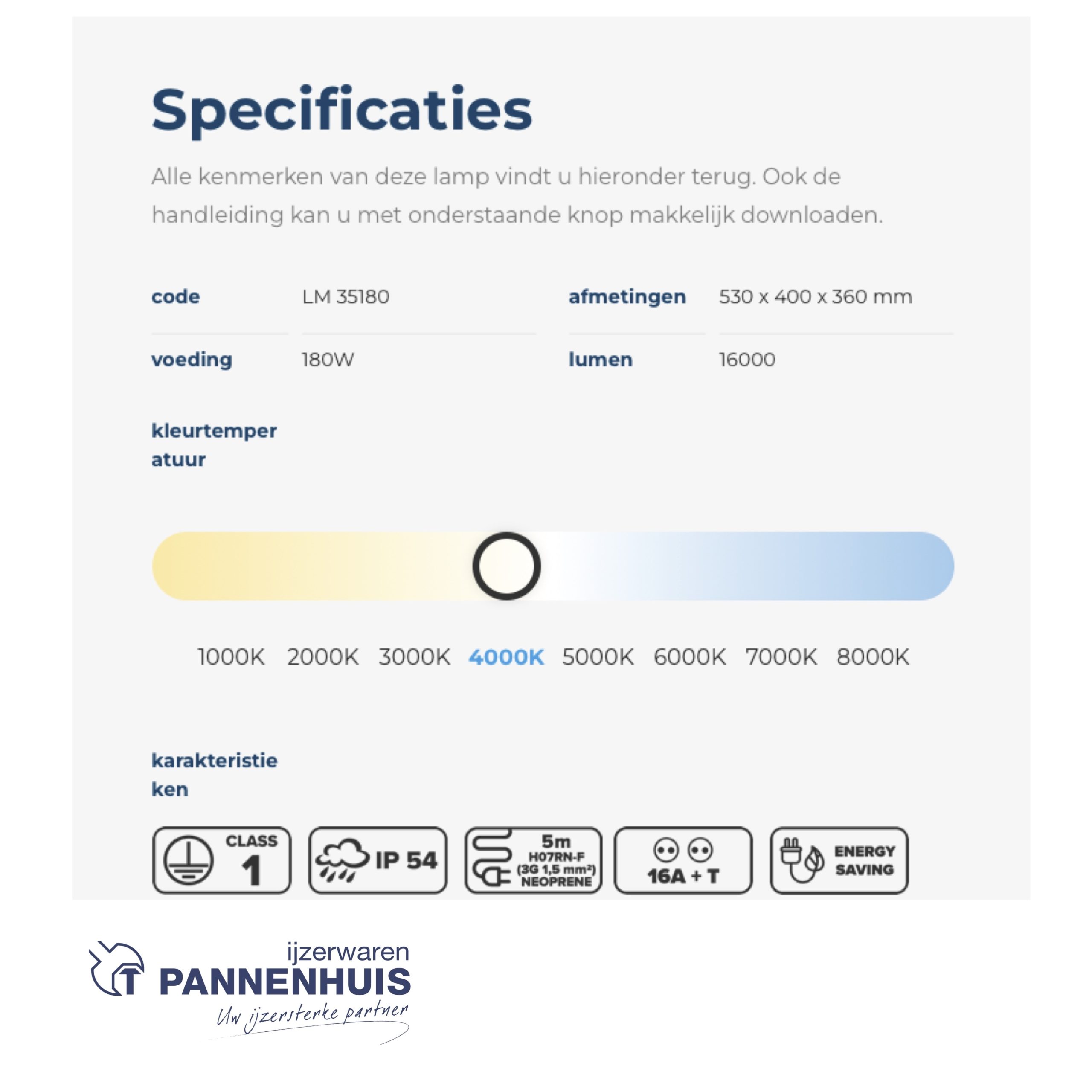 Alle kenmerken van deze lamp vindt u hieronder terug. Ook de handleiding kan u met onderstaande knop makkelijk downloaden.