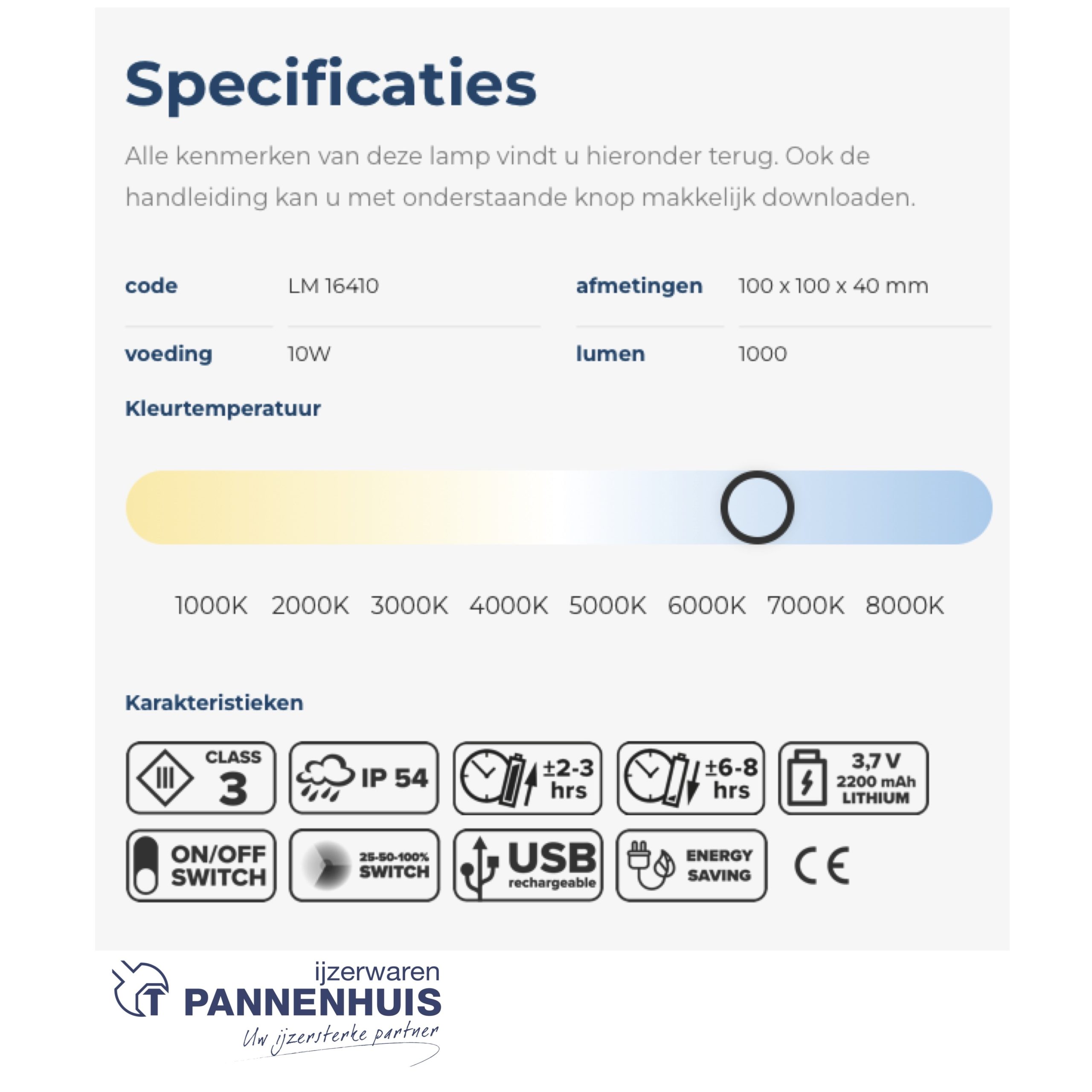 Alle kenmerken van deze lamp vindt u hieronder terug. Ook de handleiding kan u met onderstaande knop makkelijk downloaden