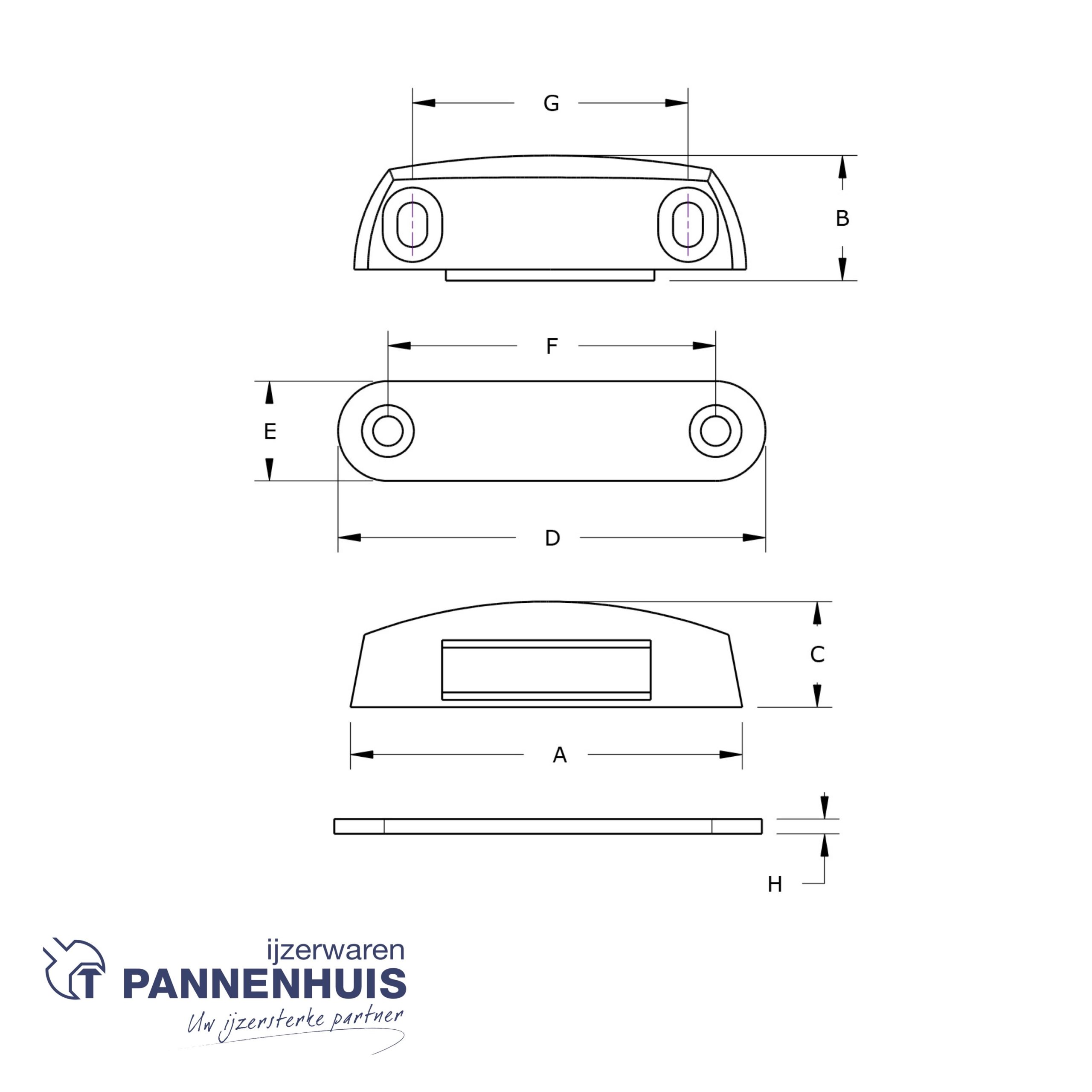 dikte tegenplaat (H) 3 mm