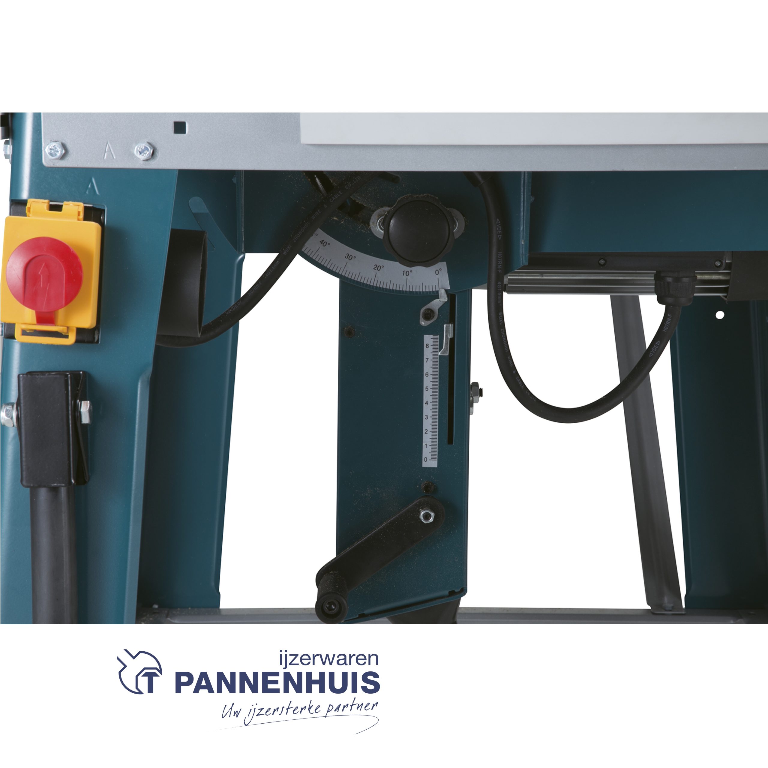 Max. zaaghoogte boven tafel bij 90° 85 mm