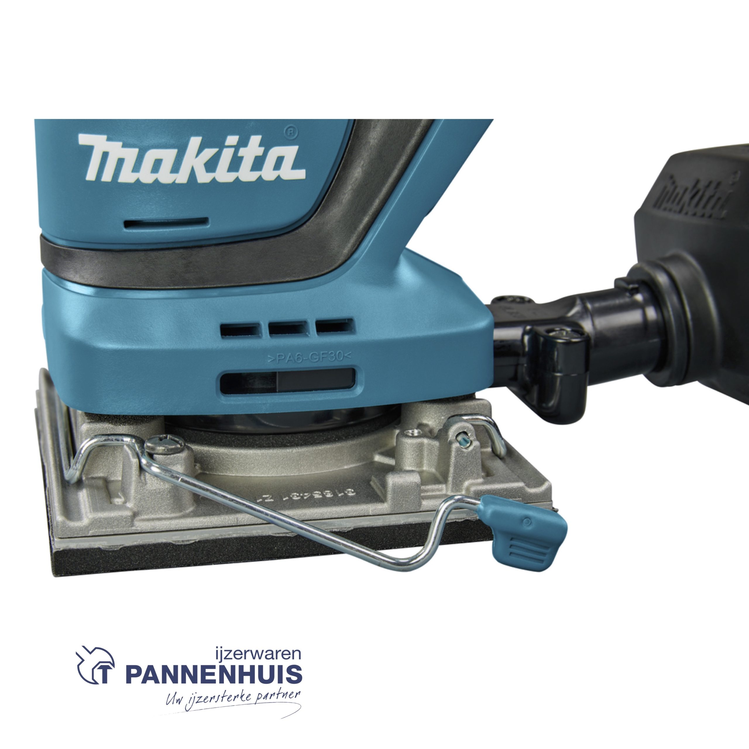 LXT 18 V Handpalm vlakschuurmachine met aluminium zool met zowel klem- als klittenband bevestiging (Velcro).