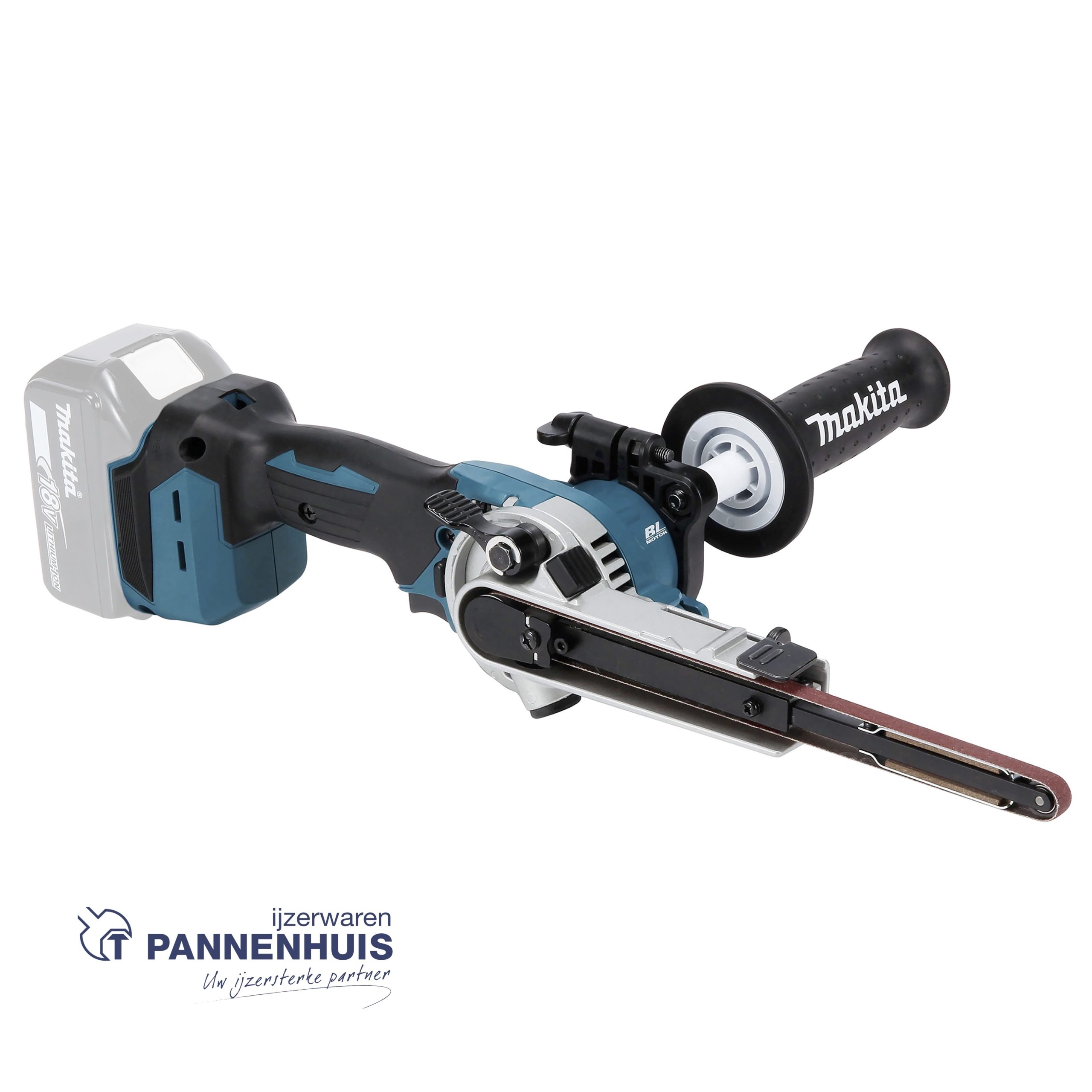 Een lichte en gebruiksvriendelijke bandschuurmachine met 18 V LXT®-accu. De bandsnelheid kan tussen 600 – 1700 m/min worden ingesteld. Dit is een ideaal gereedschap voor afwerken, verwijderen van bramen en werken in kleine ruimtes. Verplaatsbare ledlamp.