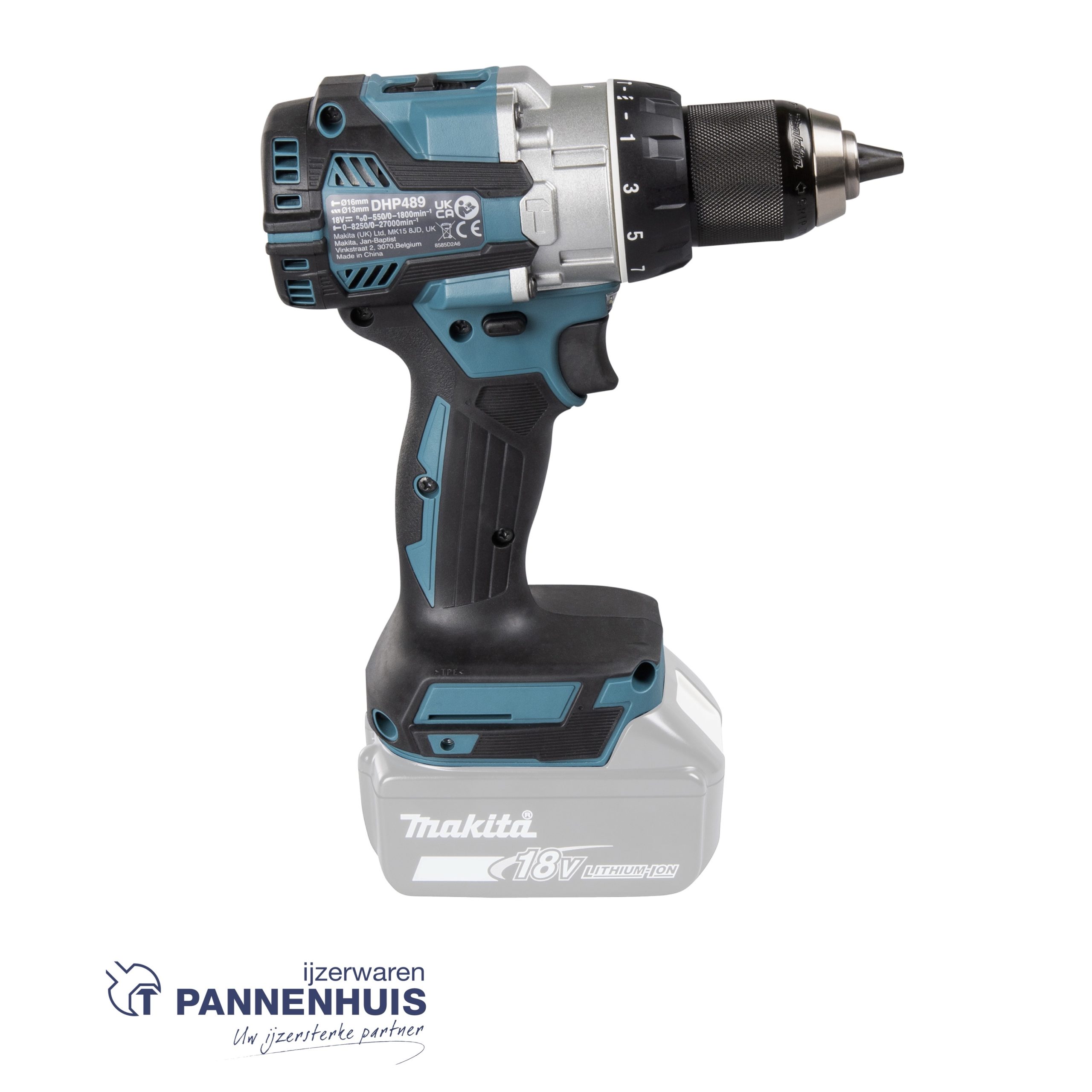 Zeer krachtige 18V schroef- en klopboormachine. Hoog koppel 36 / 70 Nm (zachte/harde verbinding).