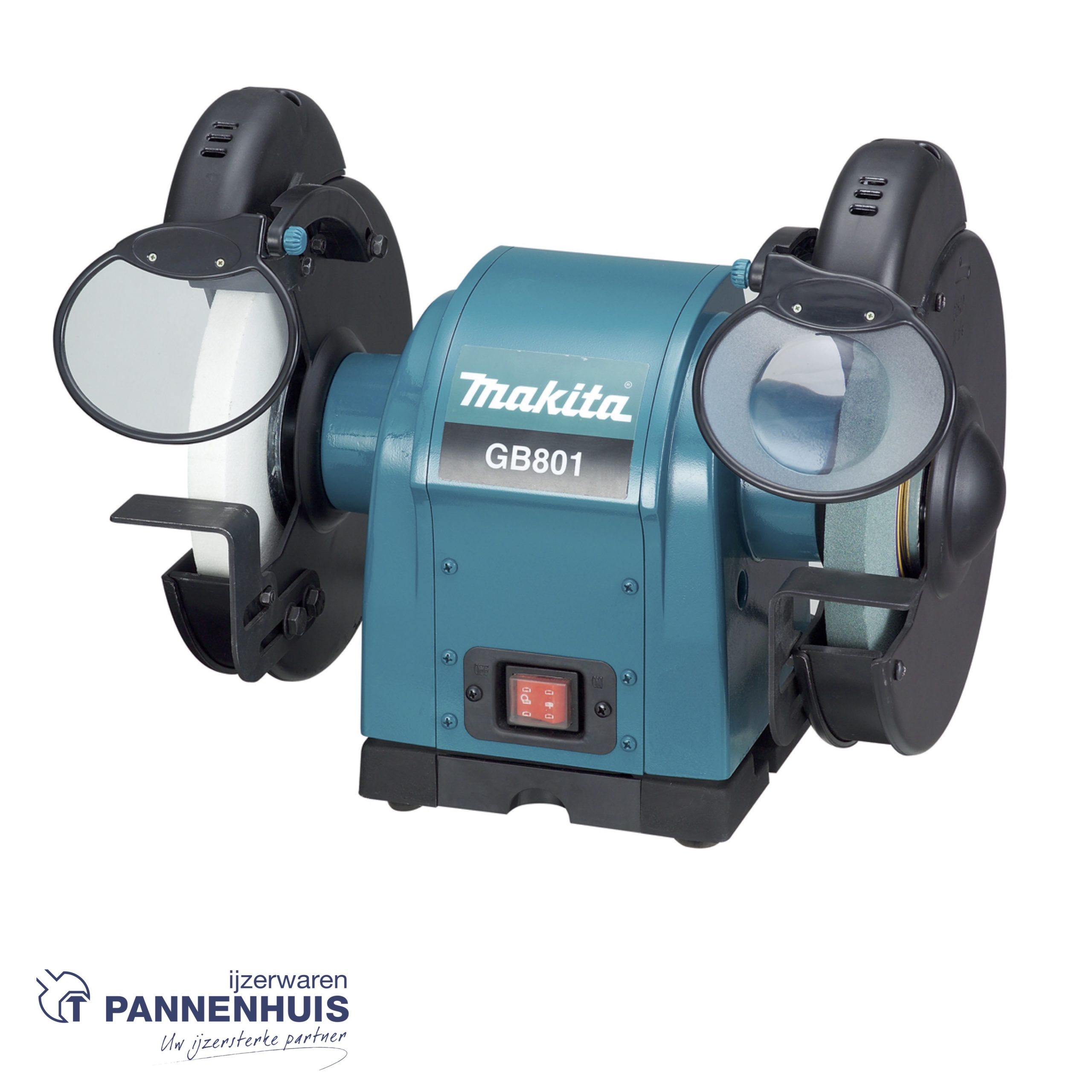 Uitgerust met een WA60 steen voor algemeen slijpwerk en een GC120 steen voor een fijnere afwerking.