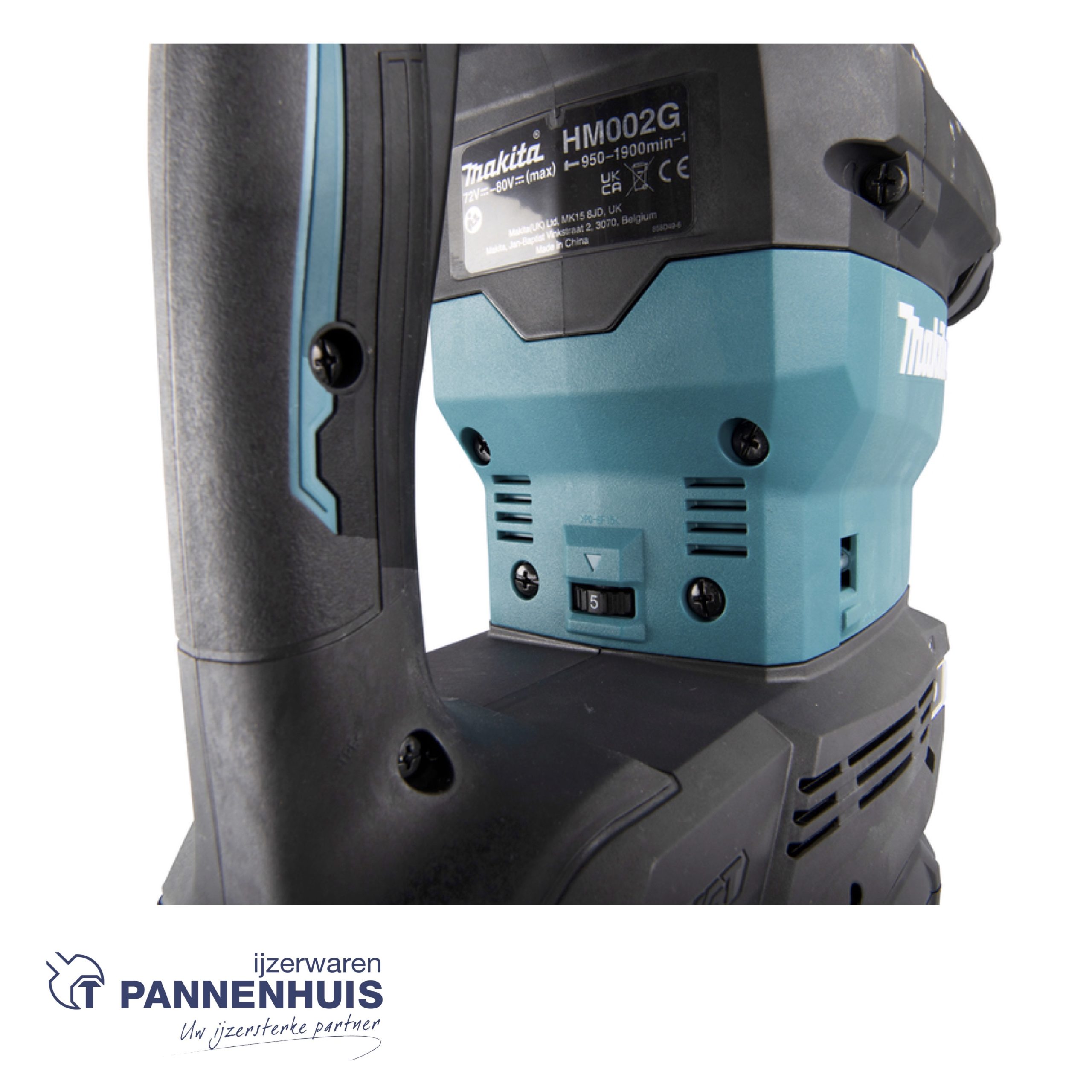 De HM002G heeft een constante snelheidsregeling die automatisch extra vermogen aan de motor levert om het toerental onder belasting te handhaven, zodat de meest uitdagende klussen kunnen worden geklaard. Optionele stofafzuigaansluiting; dezelfde die al voor de HM1213C beschikbaar is, voor een schonere werkomgeving.
