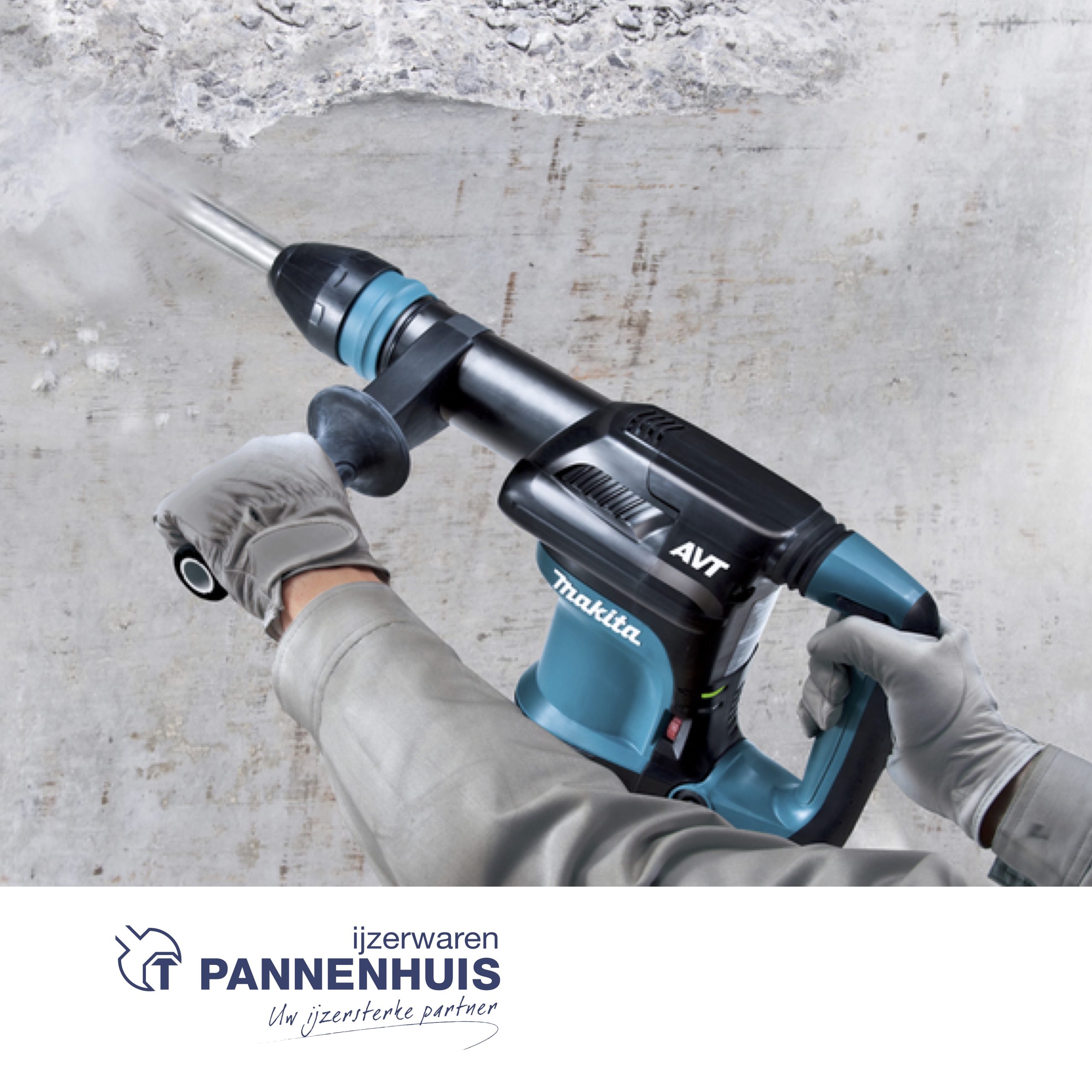 Compacte en handzame breekhamer voor aanpassingswerken en licht sloopwerk, zowel horizontaal als verticaal.
