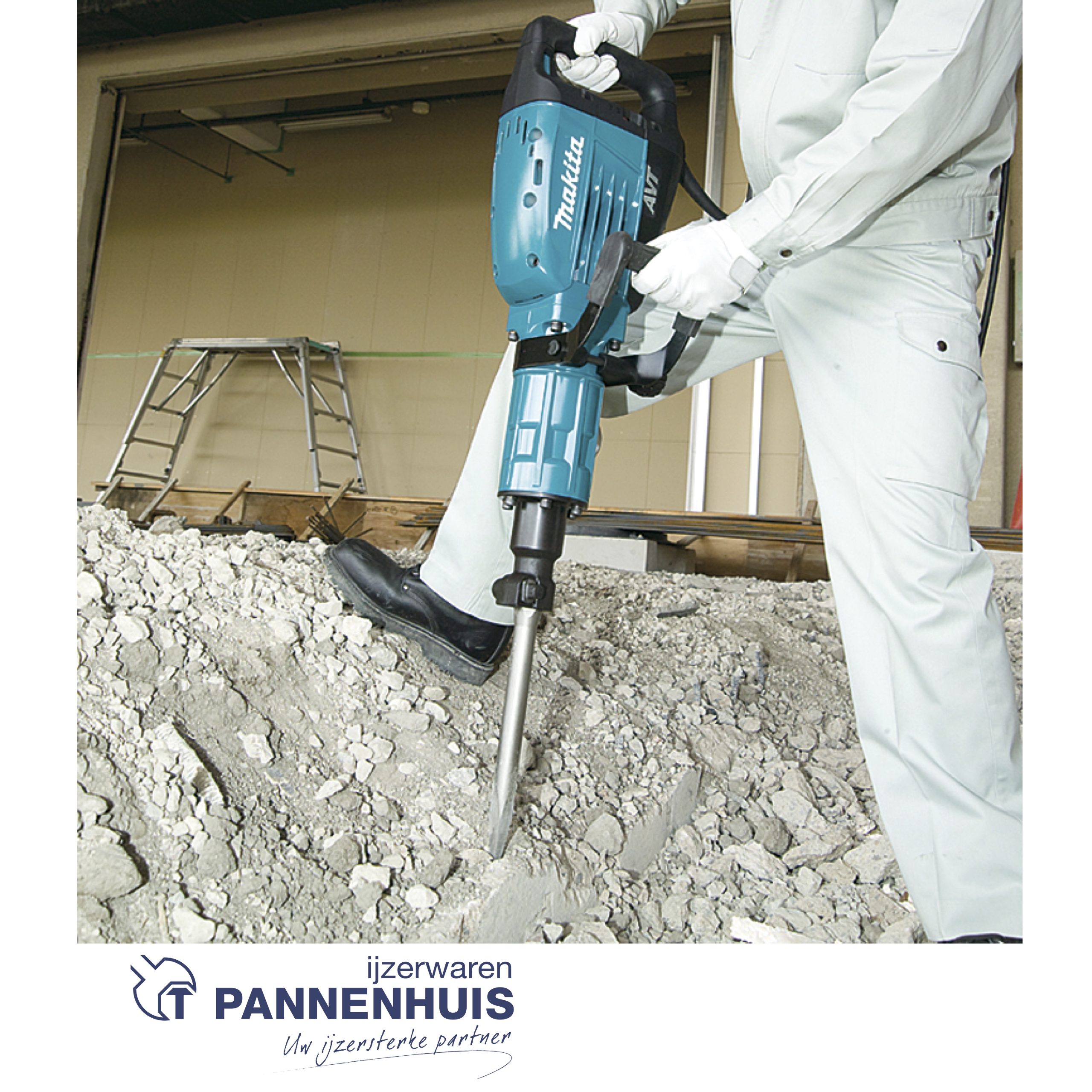 Robuuste en zeer krachtige inline-breekhamer, ideaal voor verticaal gebruik zoals het uitbreken van vloeren.