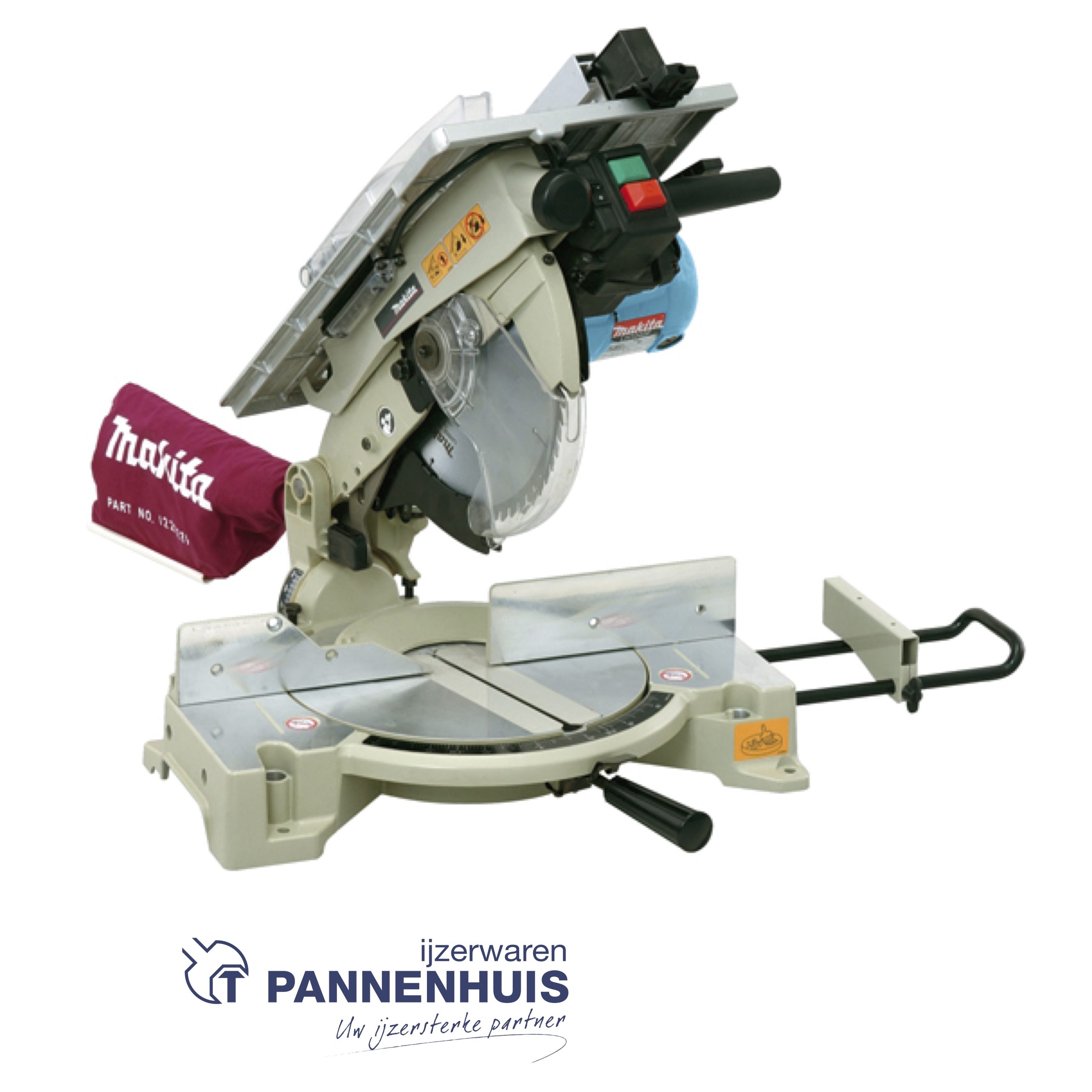 Kantelbare kop voor het zagen van dubbele verstekken.
