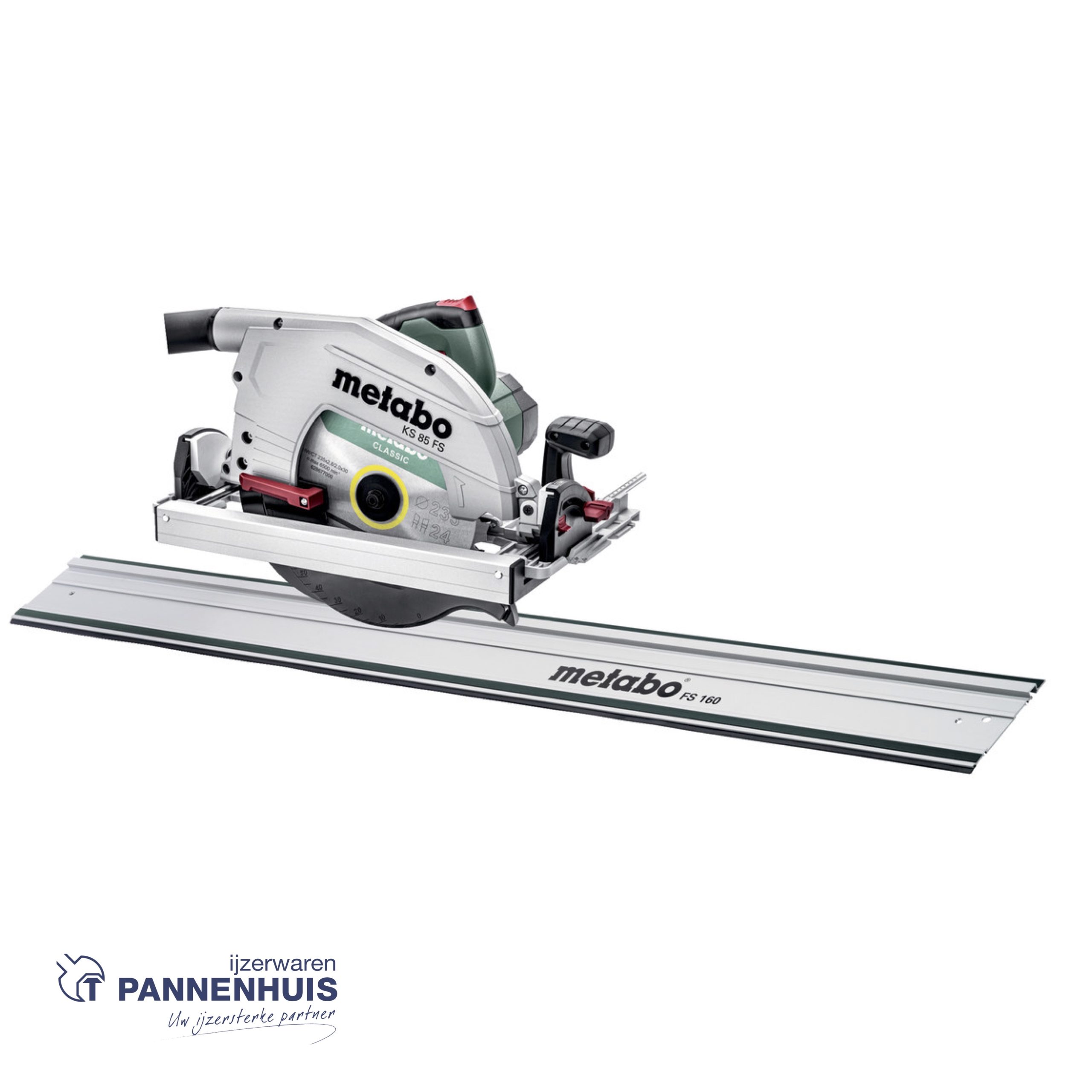 Robuuste cirkelzaag, gebruiksklaar op geleiderails van Metabo of andere fabrikanten voor nauwkeurige, lange zaagsneden