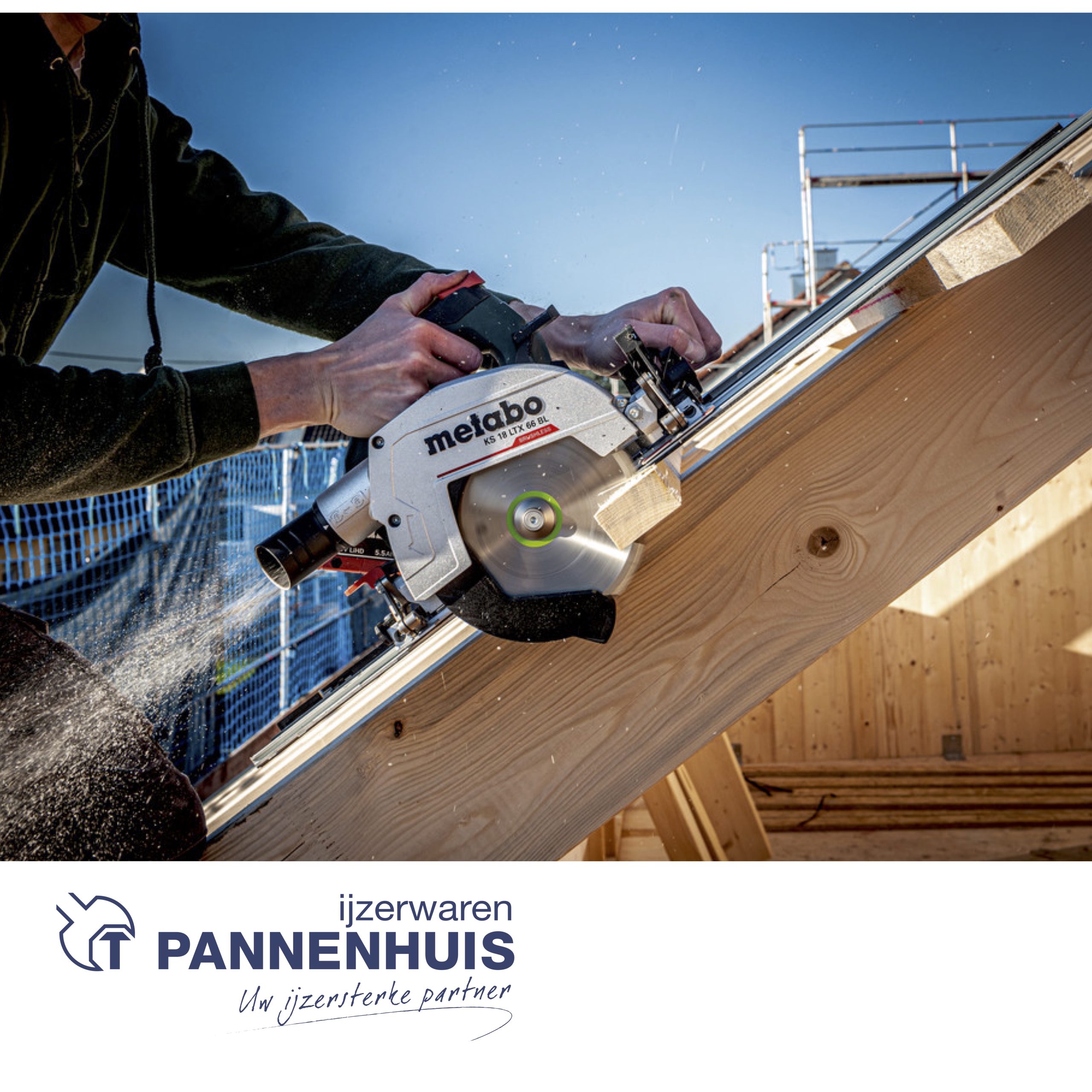 Robuuste cirkelzaag, gebruiksklaar op geleiderails van Metabo of andere fabrikanten voor nauwkeurige, lange zaagsneden