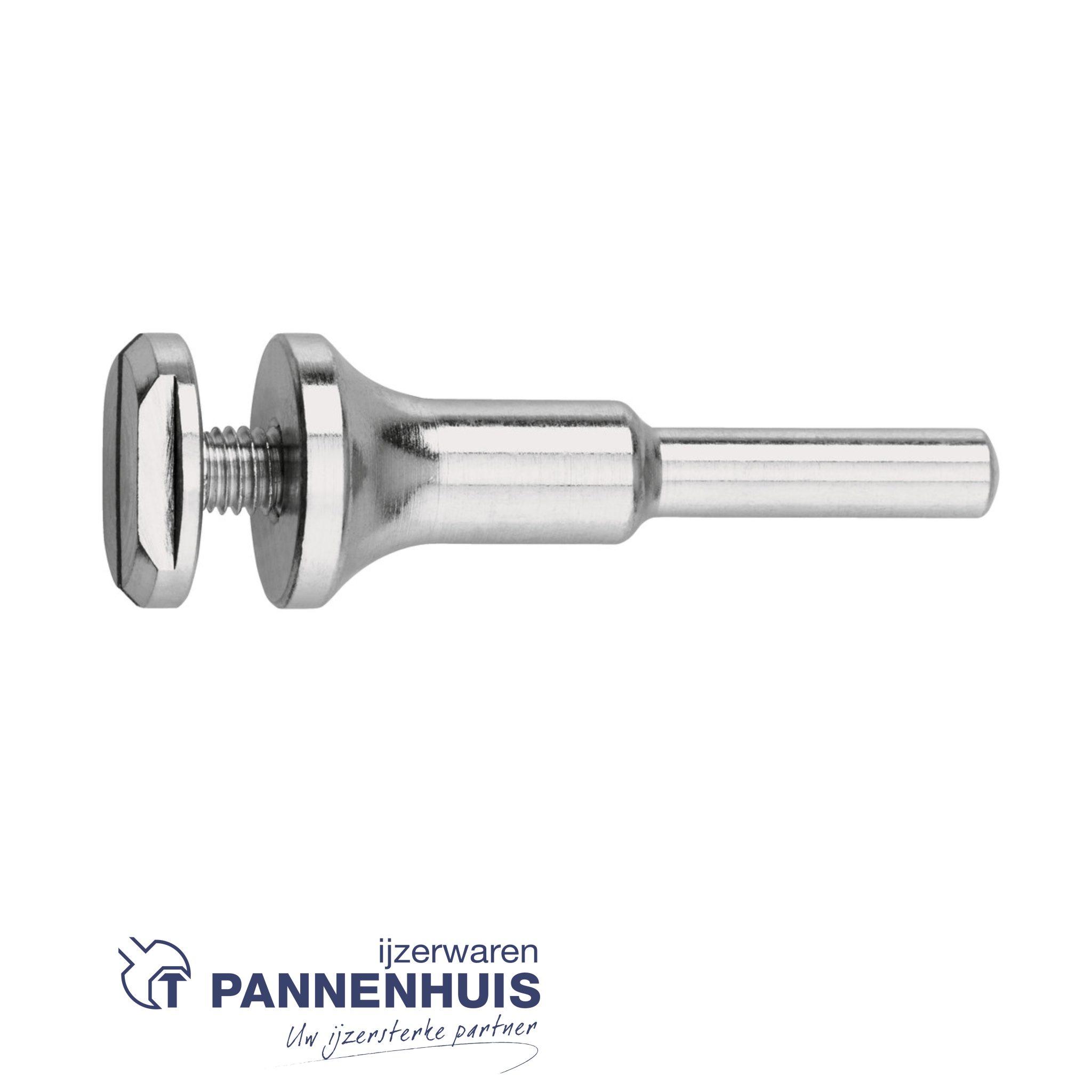 Voor het opspannen van kleine doorslijp- en afbraamschijven op rechte slijpers