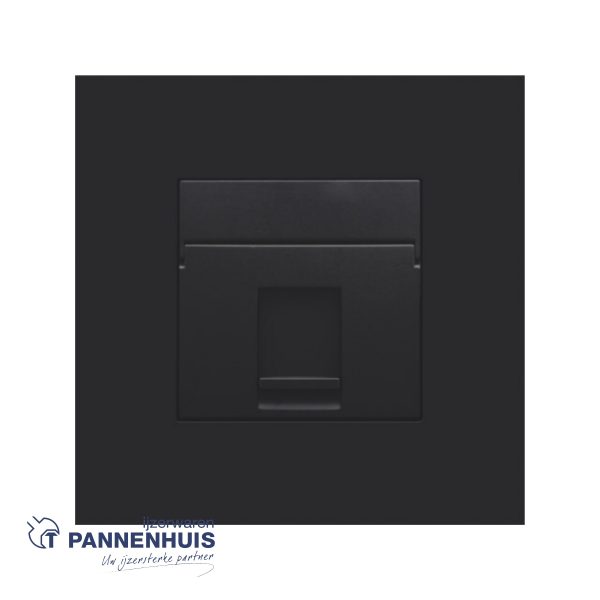 Centraalplaatje voor 1 RJ aansluiting UTP Cat. 5E in een vlakke uitvoering. Afwerkingskleur: black coated.