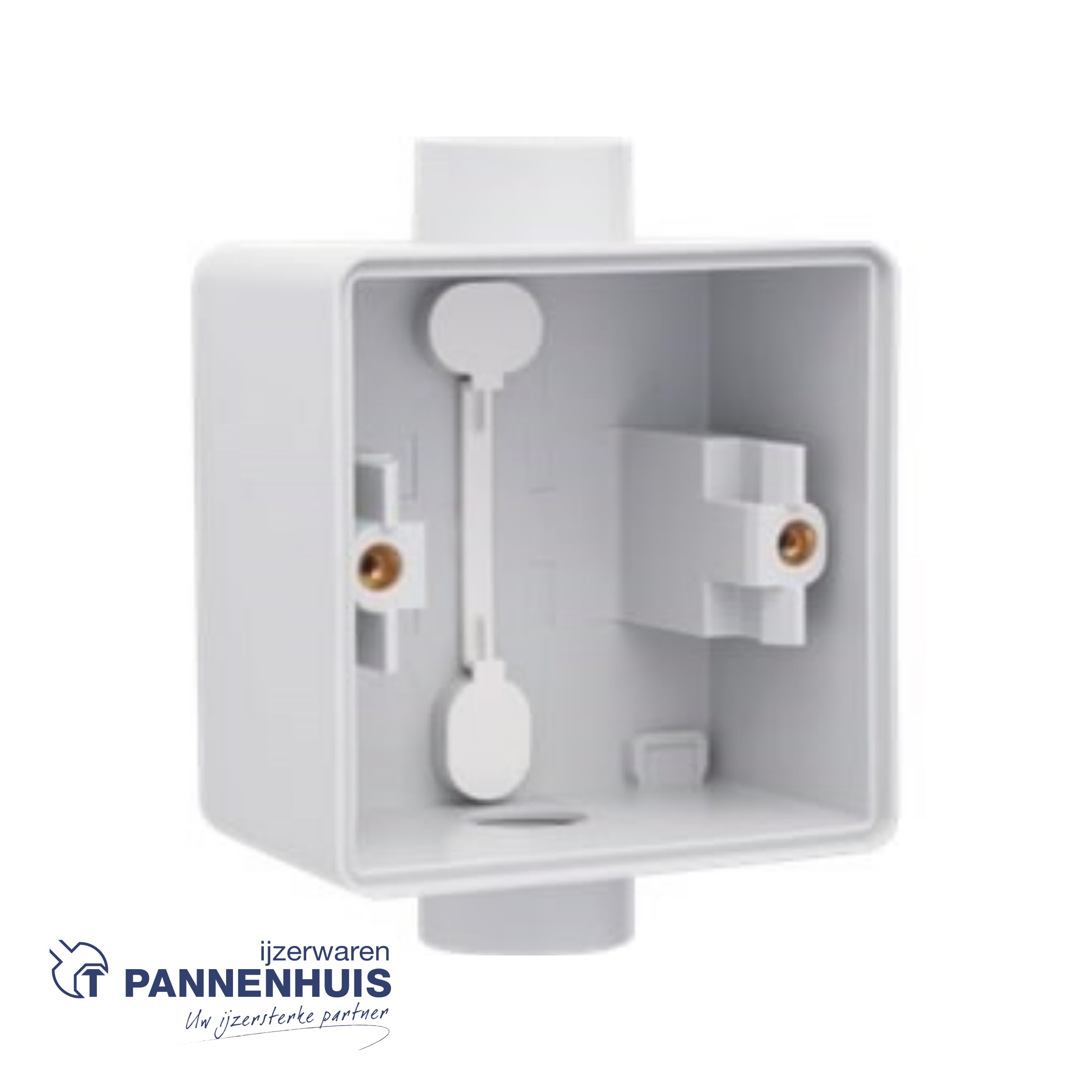 Materiaal opbouwdoos: De opbouwdoos is vervaardigd uit slagvast, stofwerend, halogeenvrij en zelfdovend polypropyleen (UL94-V2/1,6 mm).