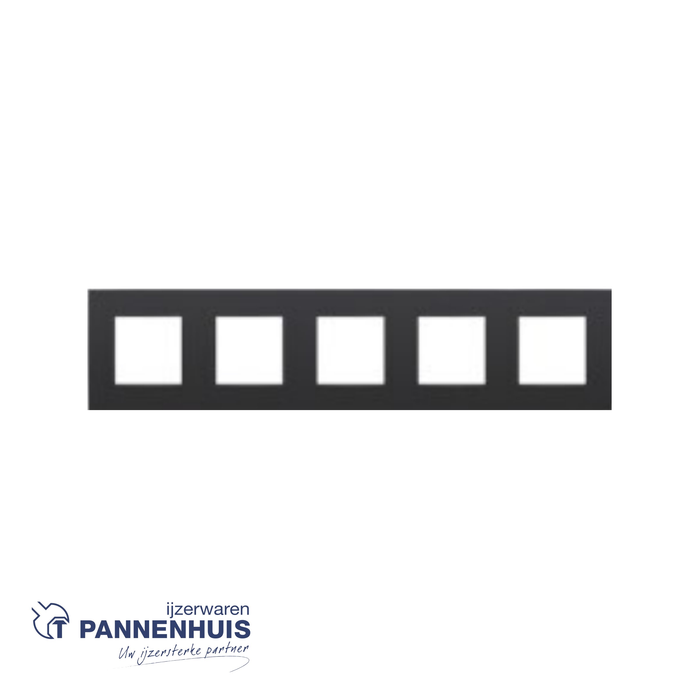 Vijfvoudige afdekplaat met 71 mm centerafstand uit de reeks Niko Intense. Niko Intense matt black coated