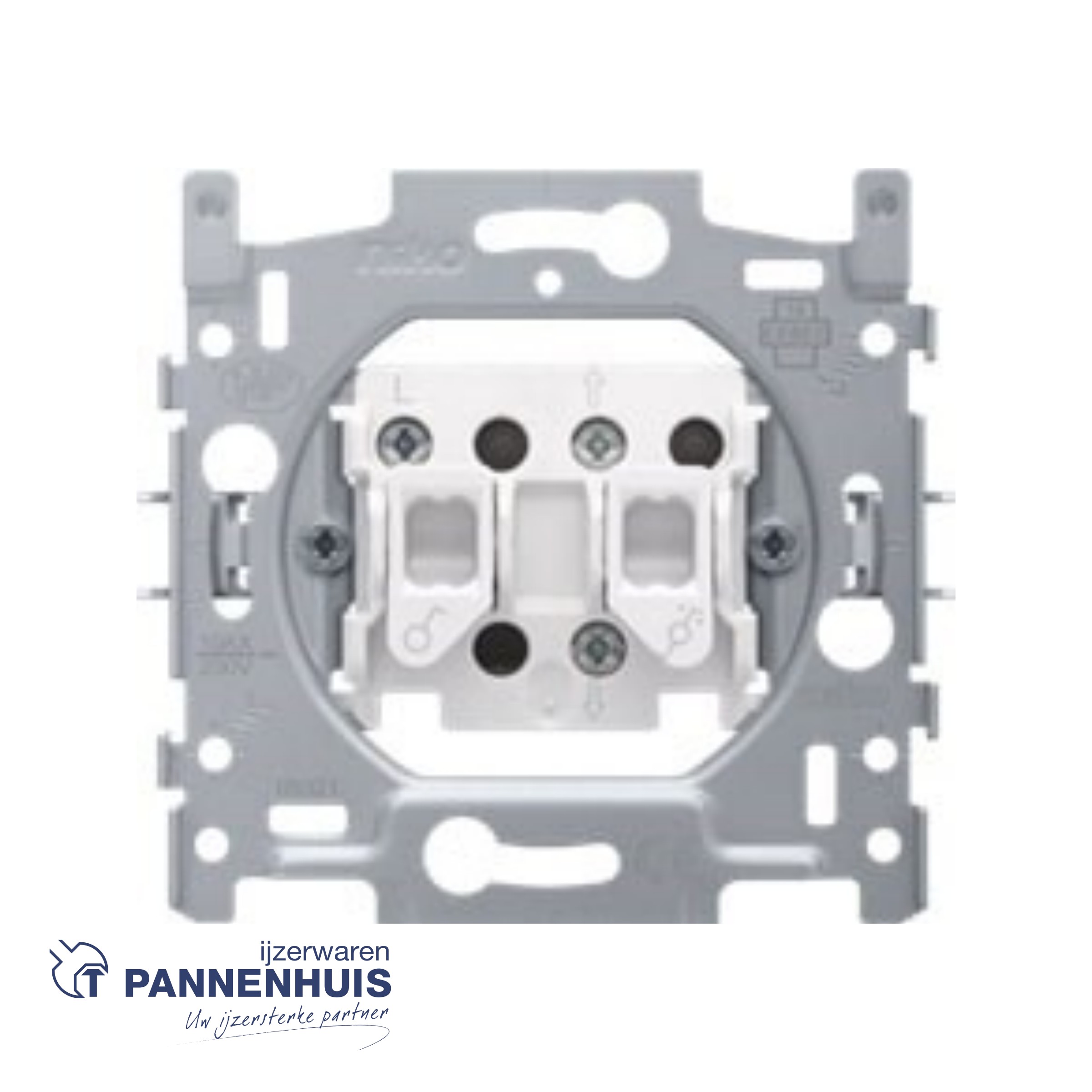 Mechanisme voor een schakelaar om je rolluiken te bedienen, met klauwbevestiging. Deze rolluikschakelaar is elektrisch gescheiden. Een afwerkingsset en een afdekplaat in een kleur naar keuze moet afzonderlijk besteld worden.