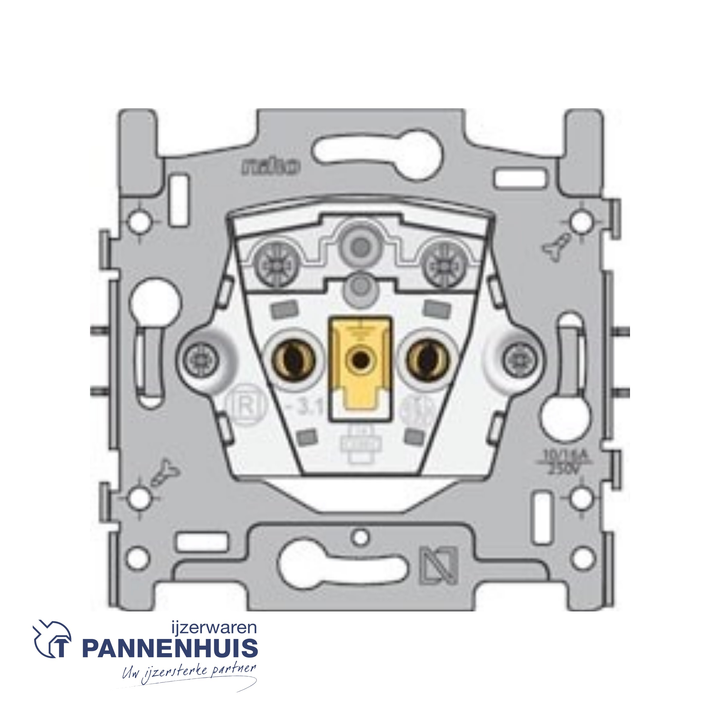 Opzetboord: 4 rechthoekige openingen (7 x 2,5 mm) die, als de inbouwdoos uit het pleisterwerk steekt, een speling tussen 1 Ã 1,2 mm kunnen opvangen, zodat de afdekplaat alsnog perfect tegen de muur kan aansluiten