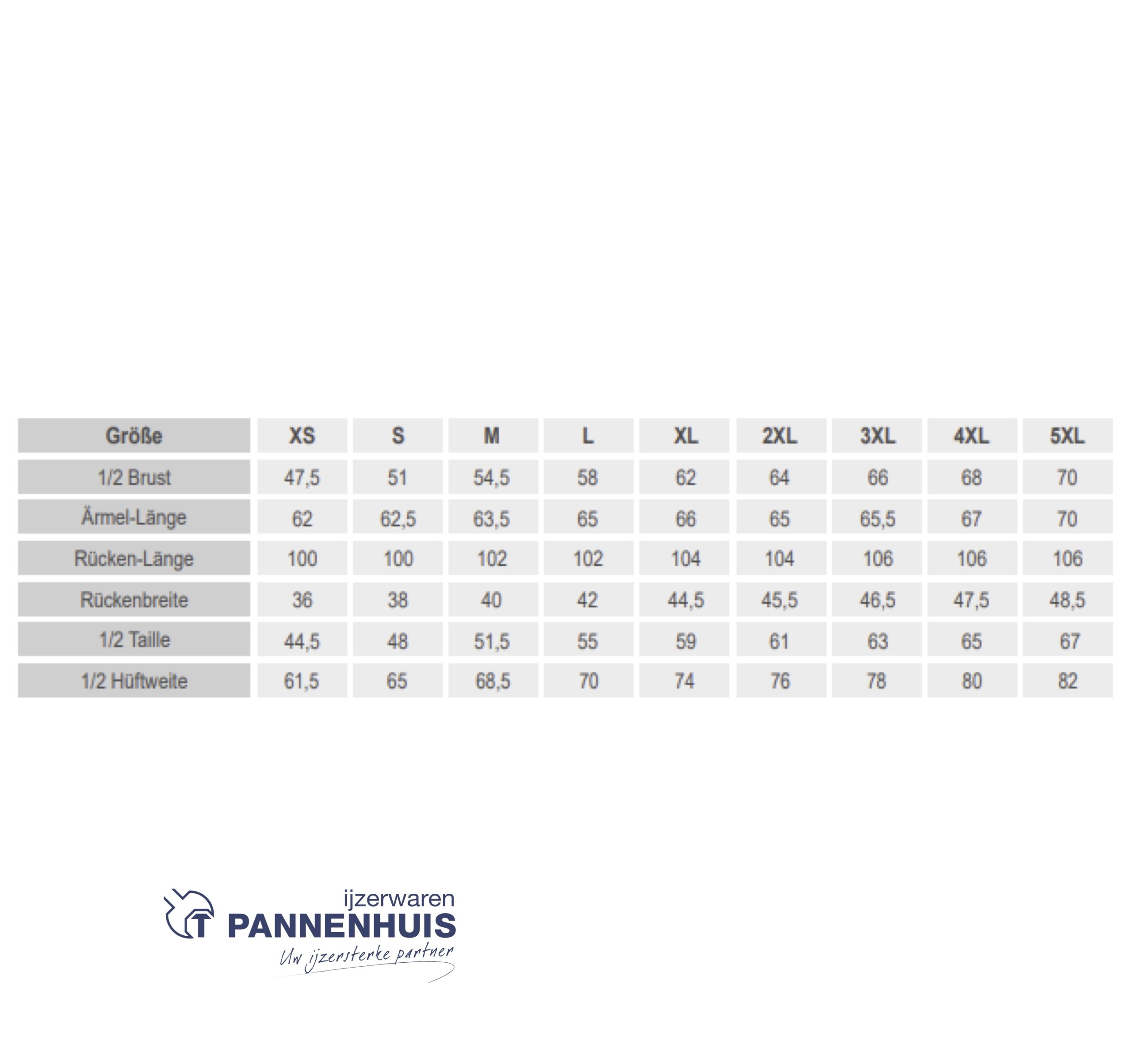 Maatvoering XS, S, M, L, XL, XXL, 3XL, 4XL, 5XL