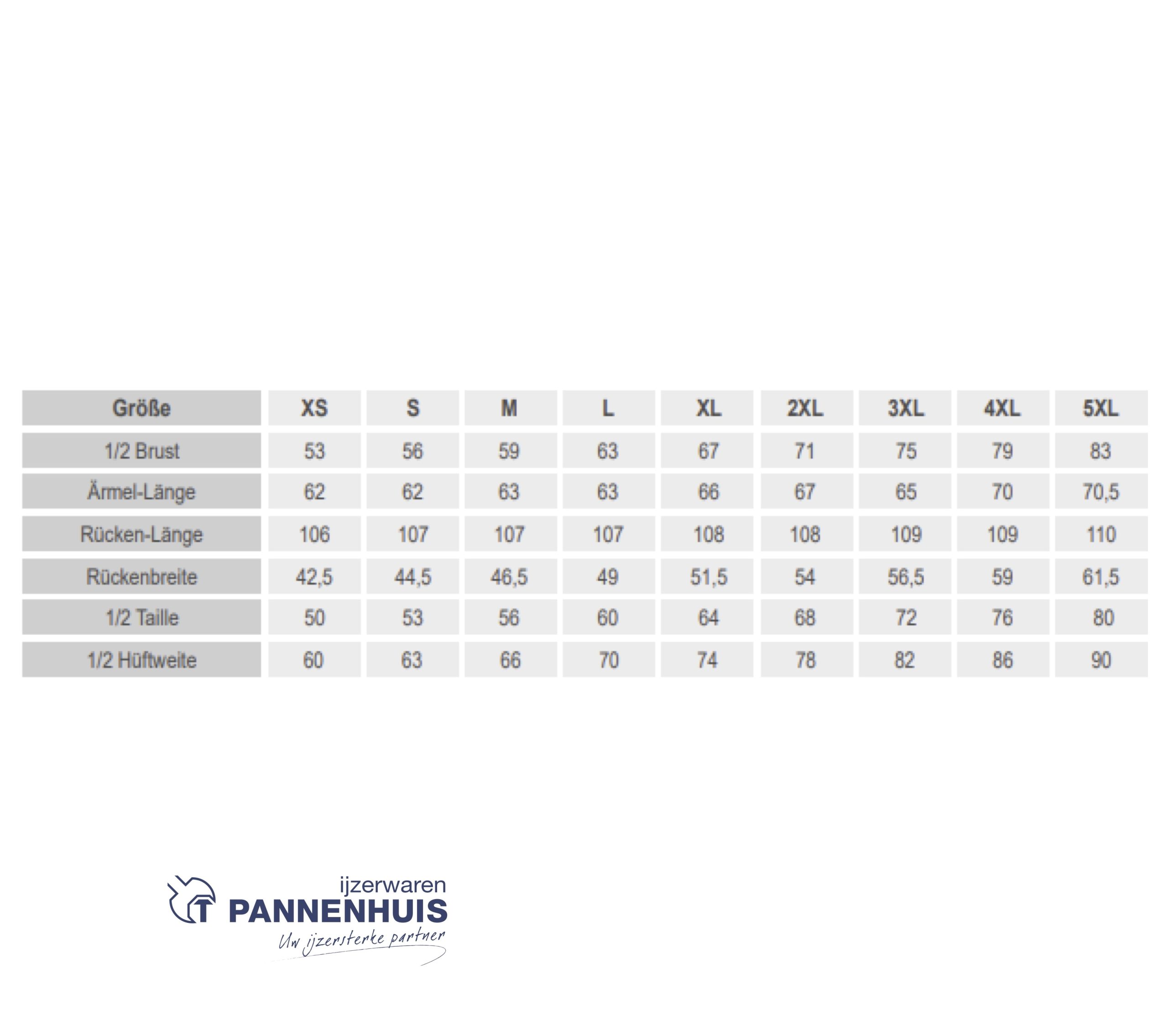 Maatvoering XS, S, M, L, XL, XXL, 3XL, 4XL, 5XL