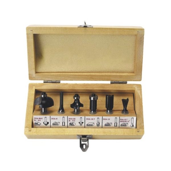 Freesgereedschap, 6-delig, in houten opbergkistje, ideaal voor doe-het-zelf houtbewerking