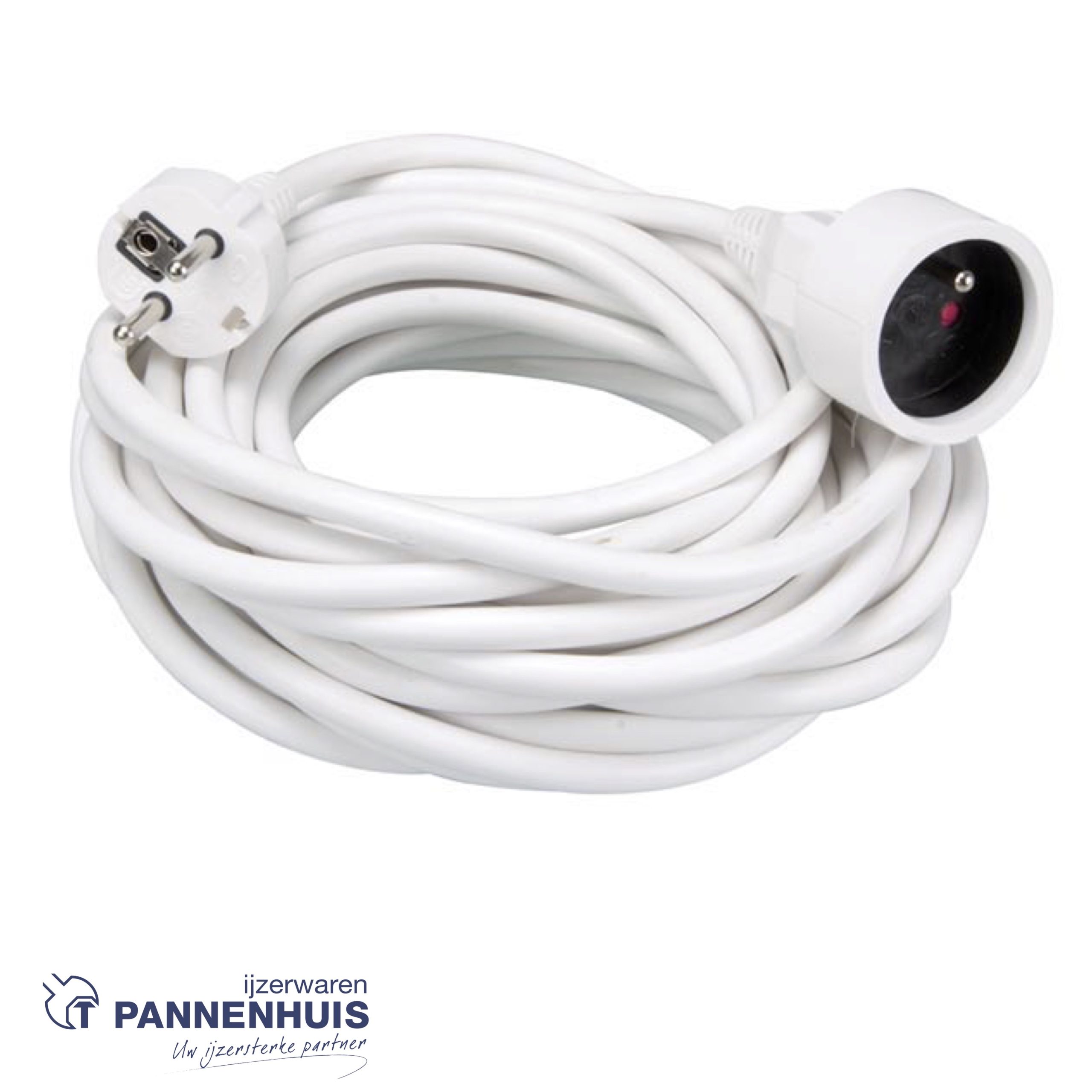 VERLENGKABEL – 10 m – WIT- 3G1.5 – PENAARDE