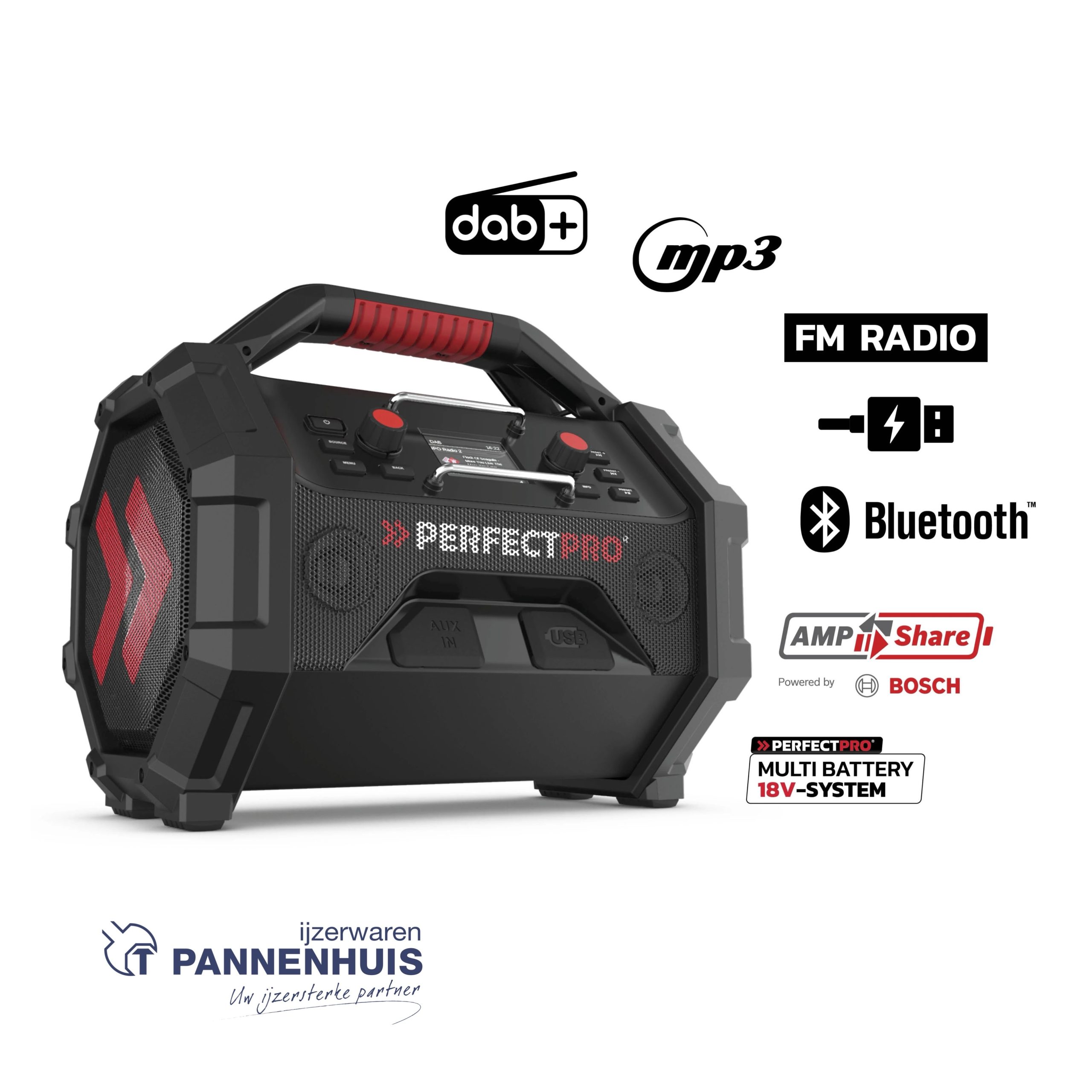 Perfectpro OCT-18V ROCKTAGON 18V DAB+/ FM / Bluetooth / Oplaadbaar / IP65 / AMP Share Bosch 18V / Makita, Milwaukee, Dewalt