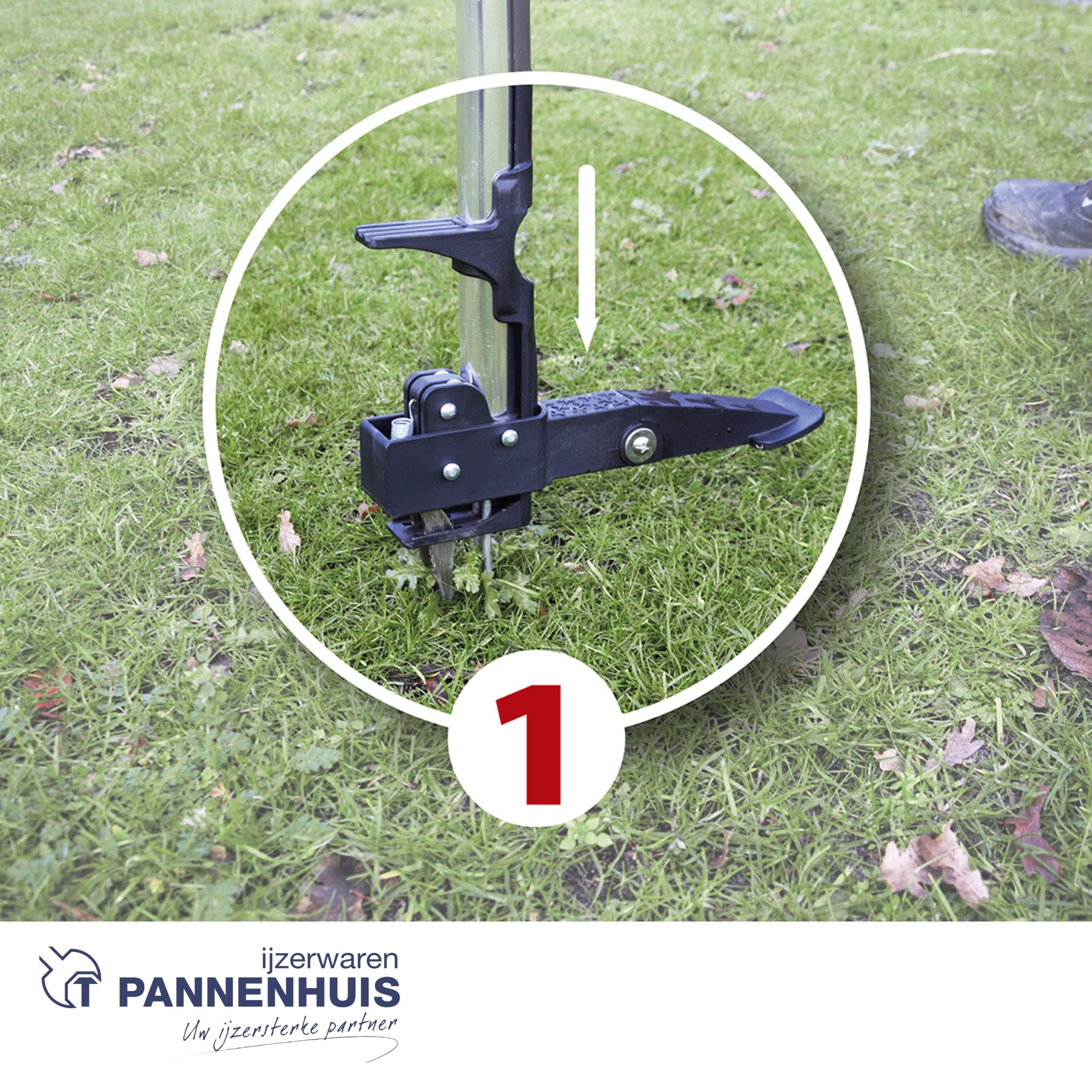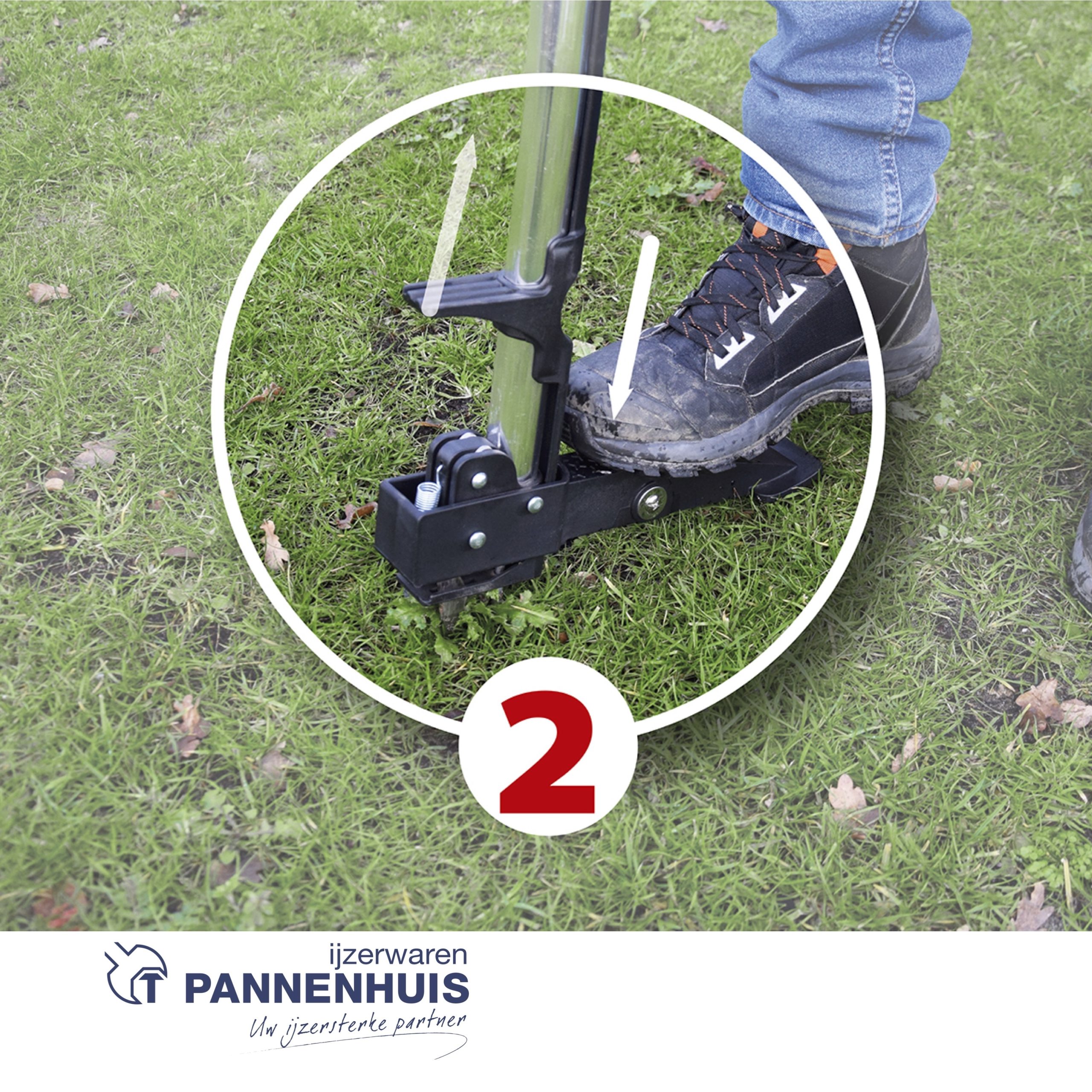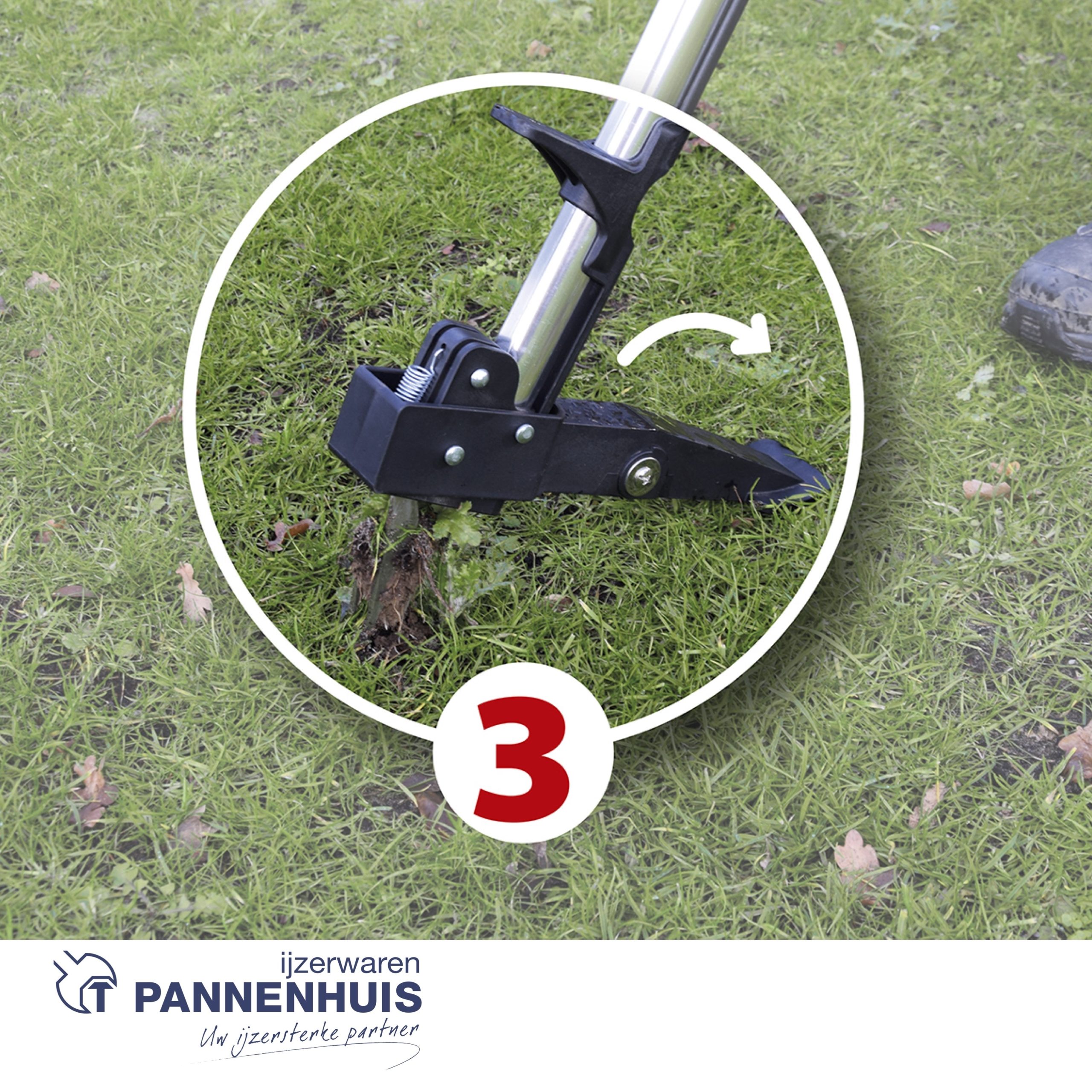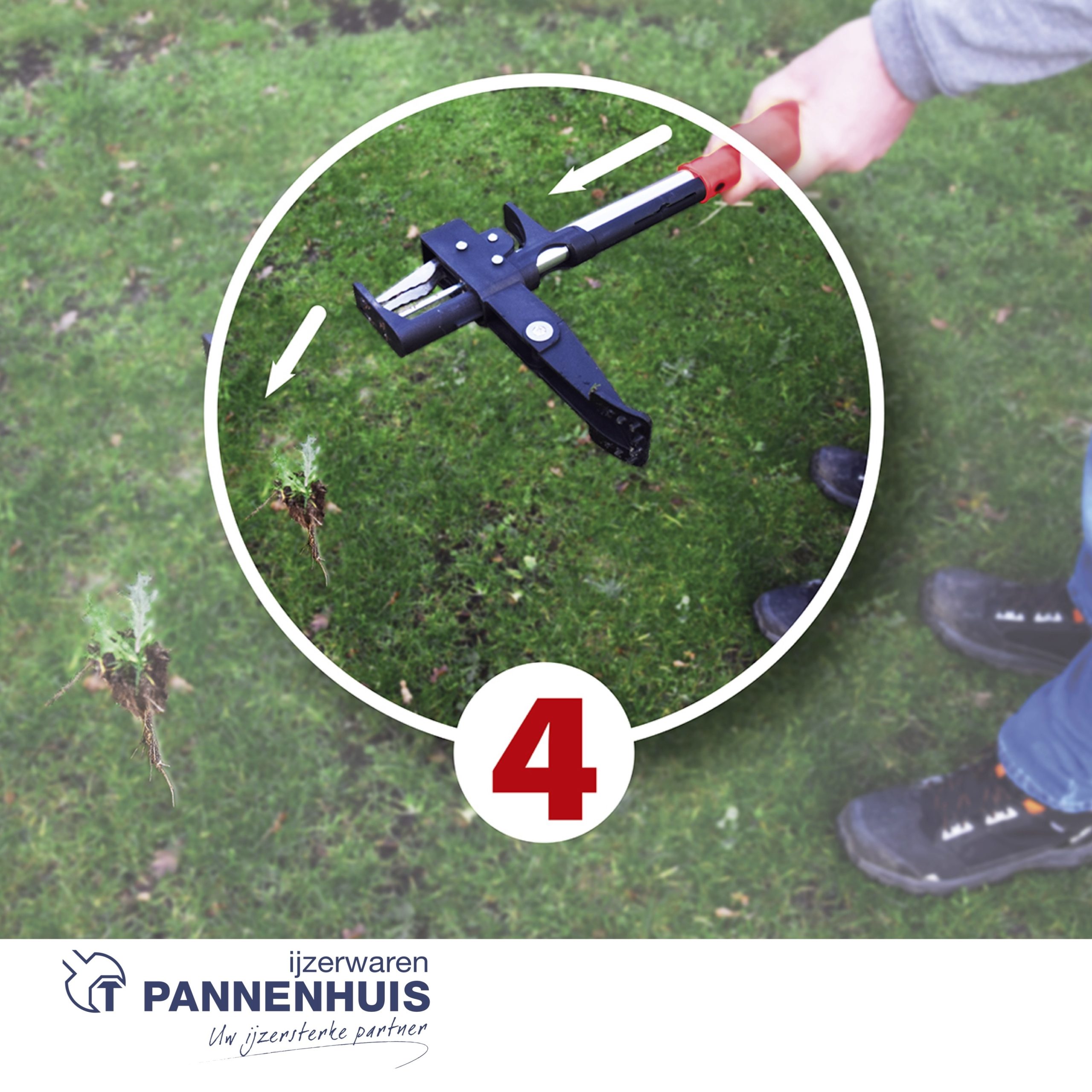 Dankzij het voetplatform kan er extra kracht gezet worden om ook in hardere grond door te dringen. De grijppinnen uit roestvrij staal dringen diep in de grond, grijpen de wortel van het onkruid rondom beet en halen deze uit de grond.