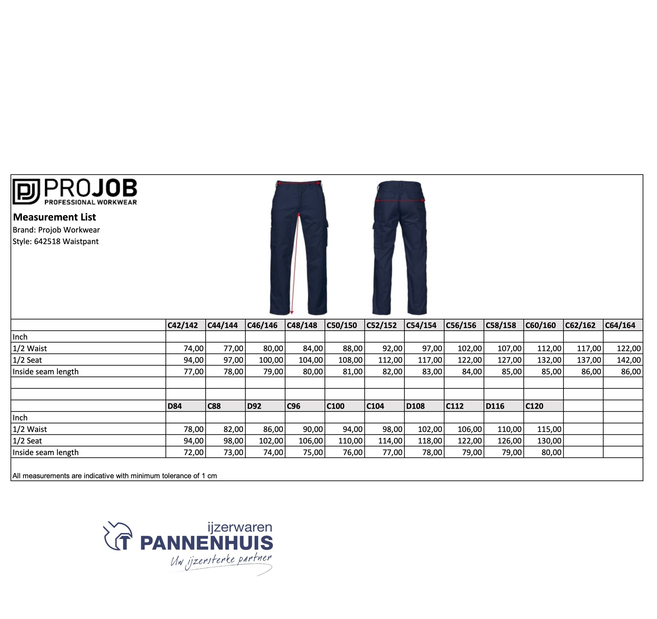 de maten C42-C64 kunnen verlengd worden met 5 cm (extra zoom)