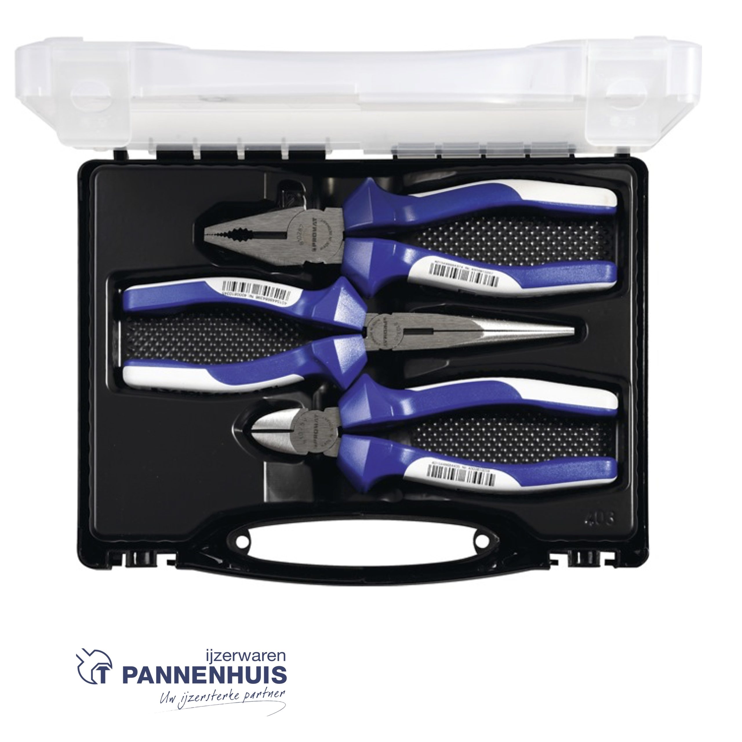 Promat Set tangen inhoud 3-delig verchroomd kunststof koffer