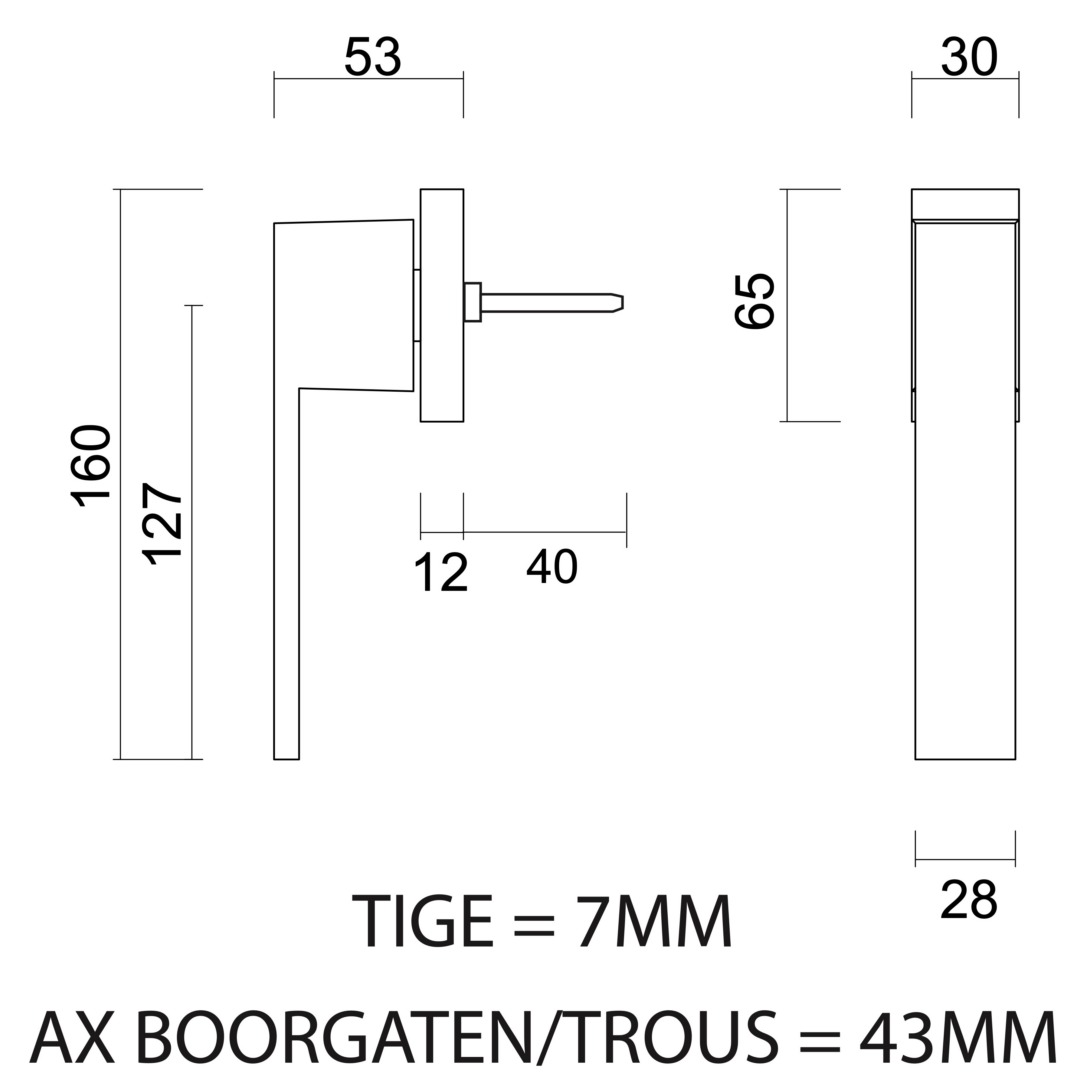 Asmaat boorgaten= 43mm