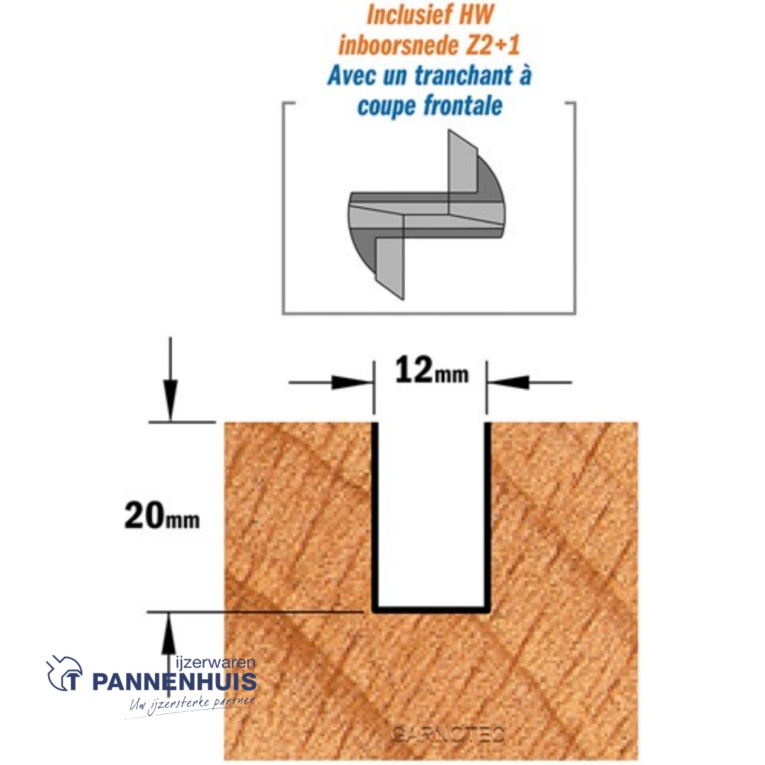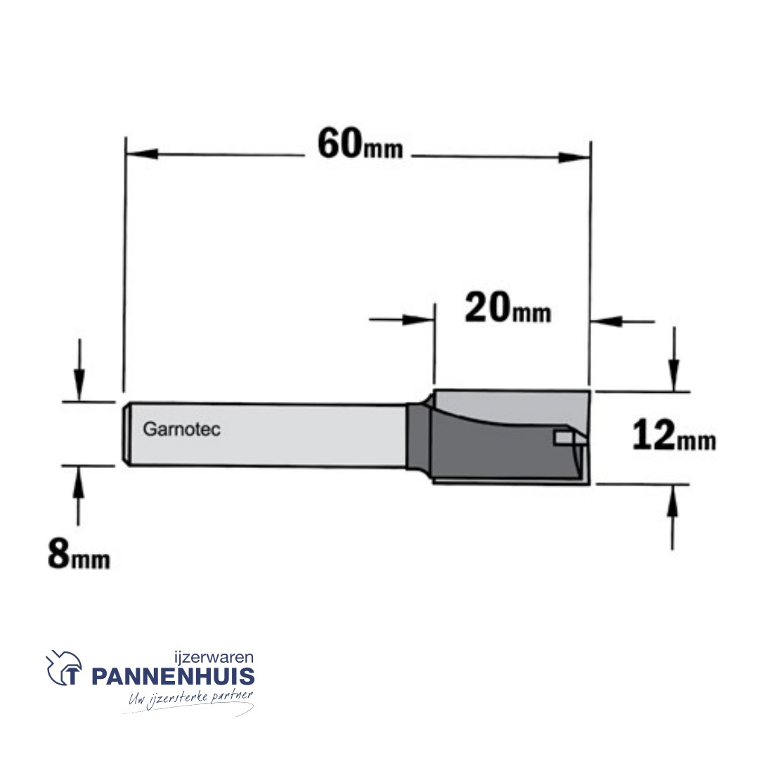 Rechte groeffrees, D=12, I=20, L=60, Z=Z2+1, S=Ø8, Kwaliteit=HW