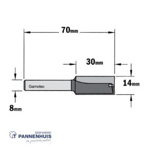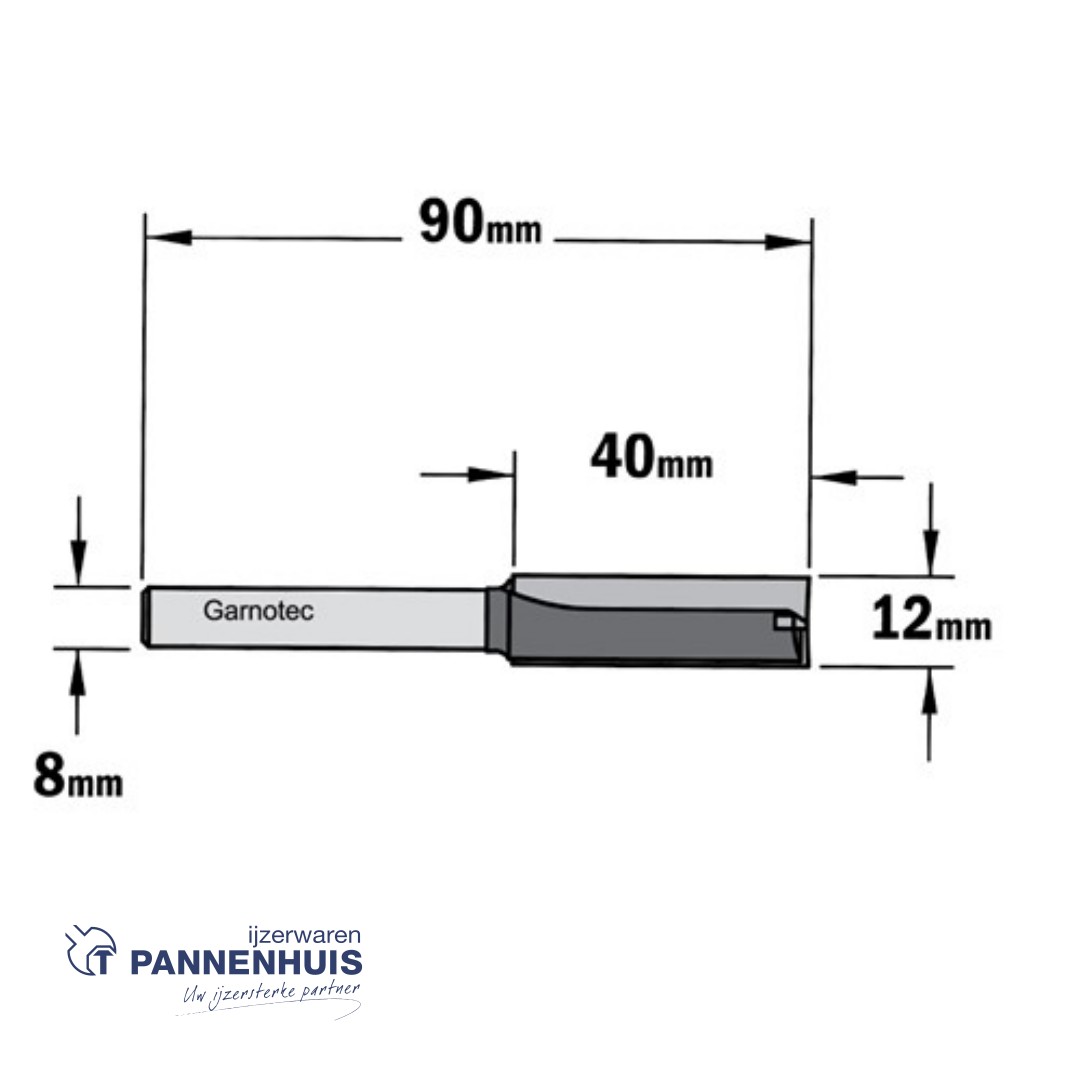 Rechte groeffrees, D=12, I=40, L=90, Z=Z2+1, S=Ø8, Kwaliteit=HW